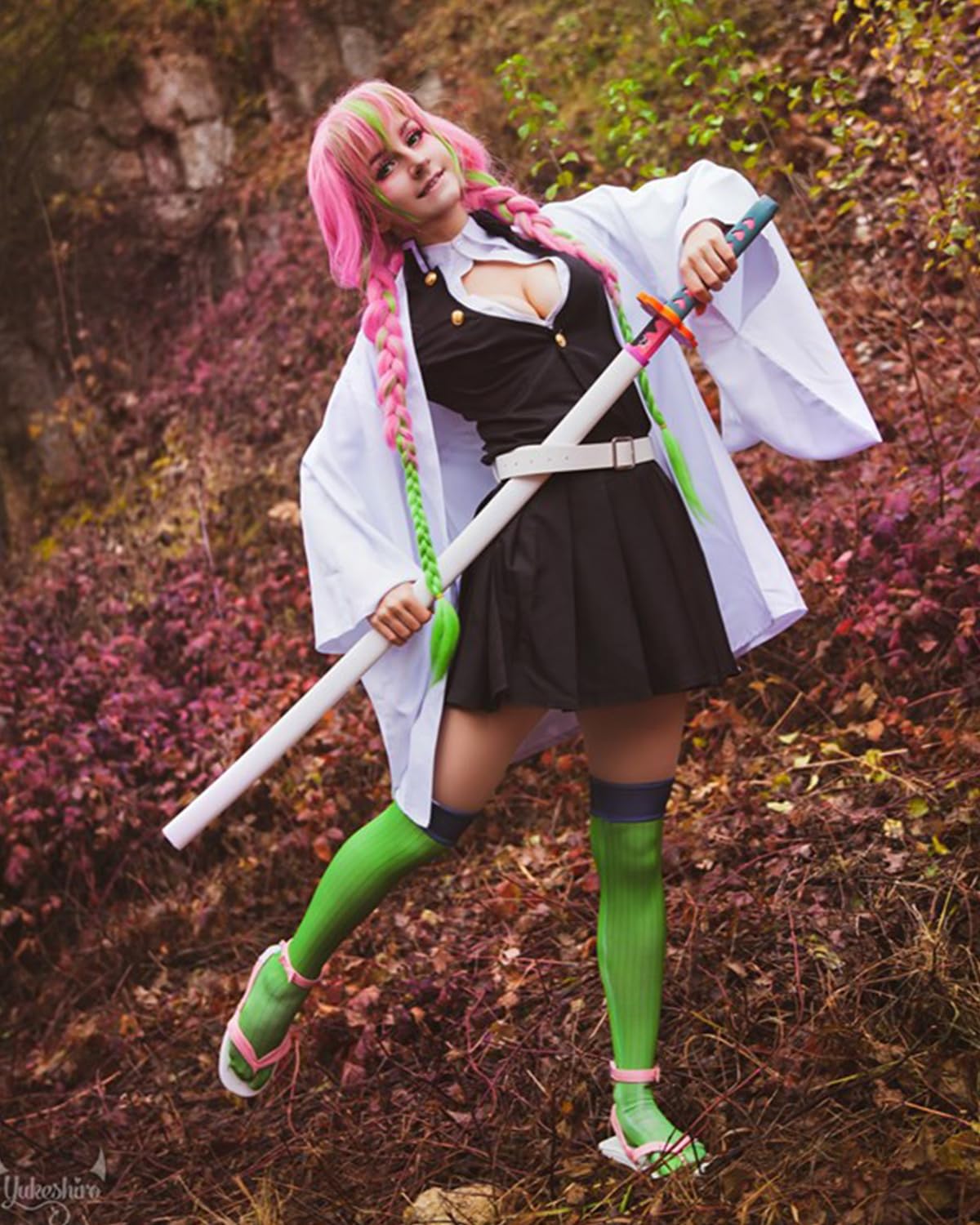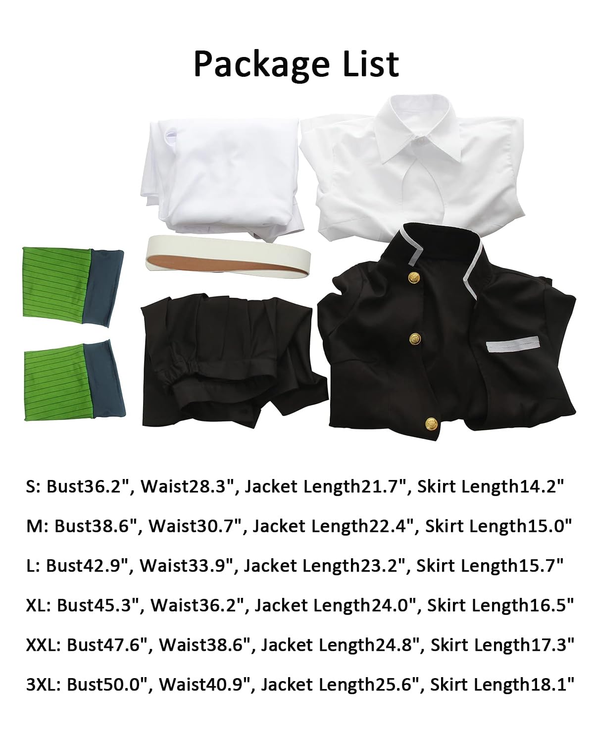 You will Receive -- This mitsuri cosplay outfit include a robe, a jacket, a shirt, a skirt, a belt, one pair of socks