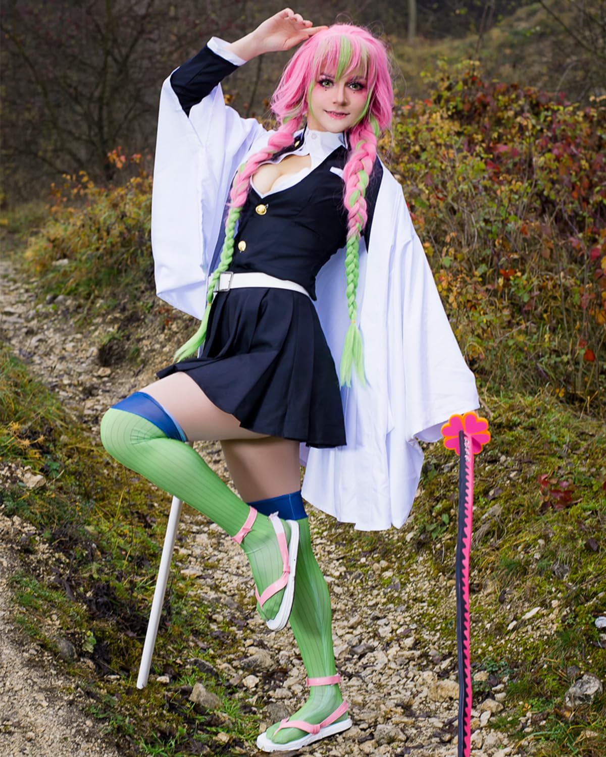 Identical to Mitsuri Kanroji Cosplay Outfit -- Outer kimono cardigan and black inner uniform set. I would recommend this cosplay to anyone who wants to start cosplaying Mitsuri Kanroji