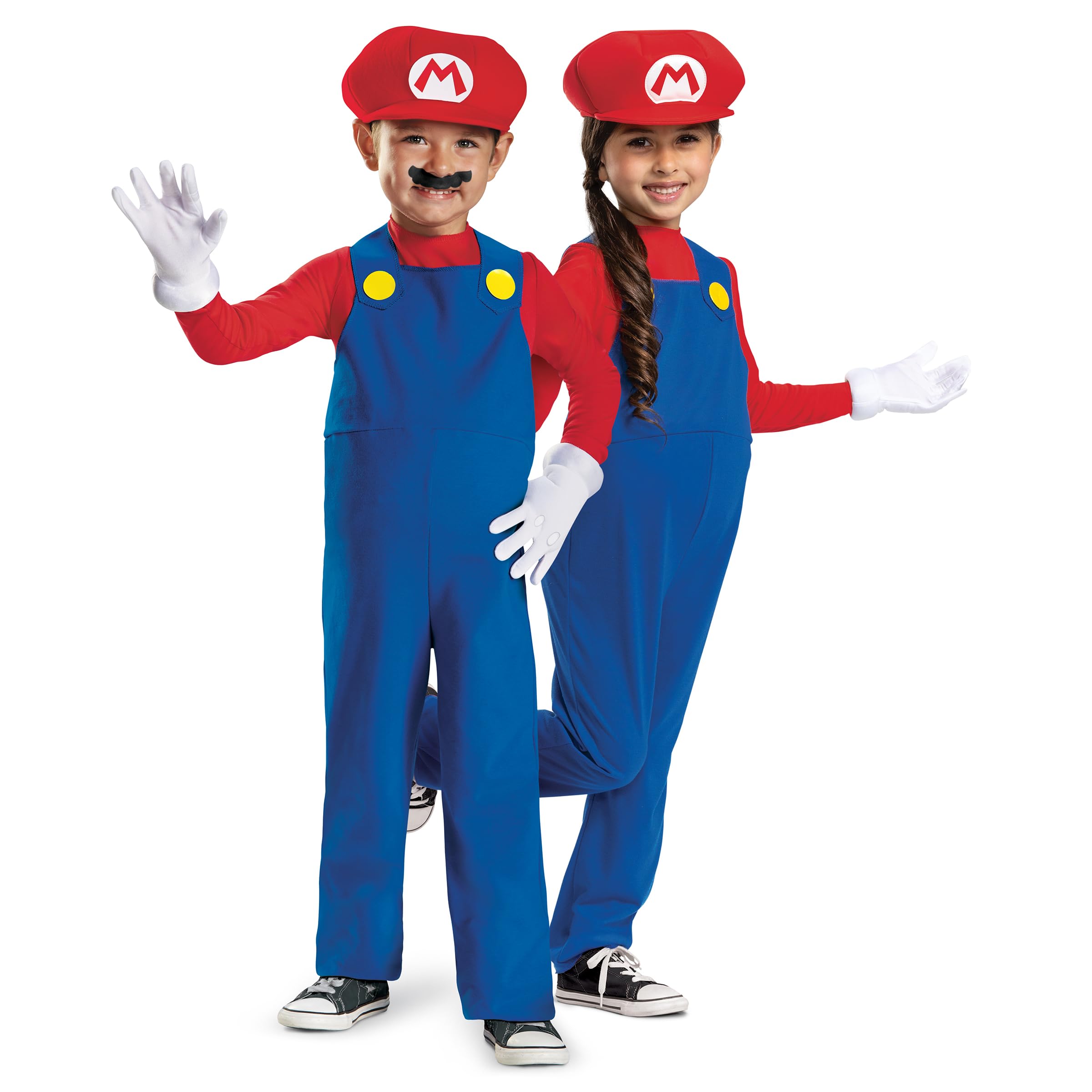 Description He's in the running to become the greatest video game plumber of all time. Get him this Toddler Mario Costume and he's sure to succeed! Just add a mustache. - Jumpsuit - Belly Pad - Hat - Pair of Gloves