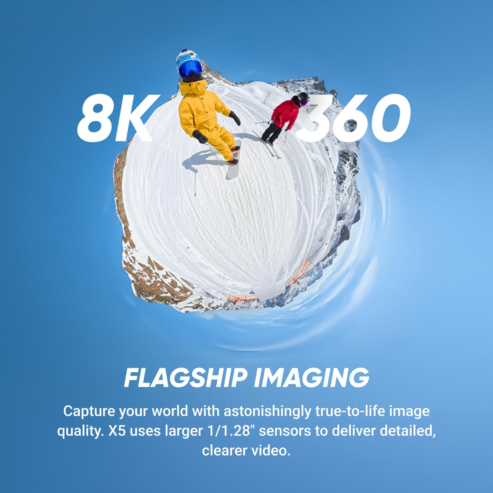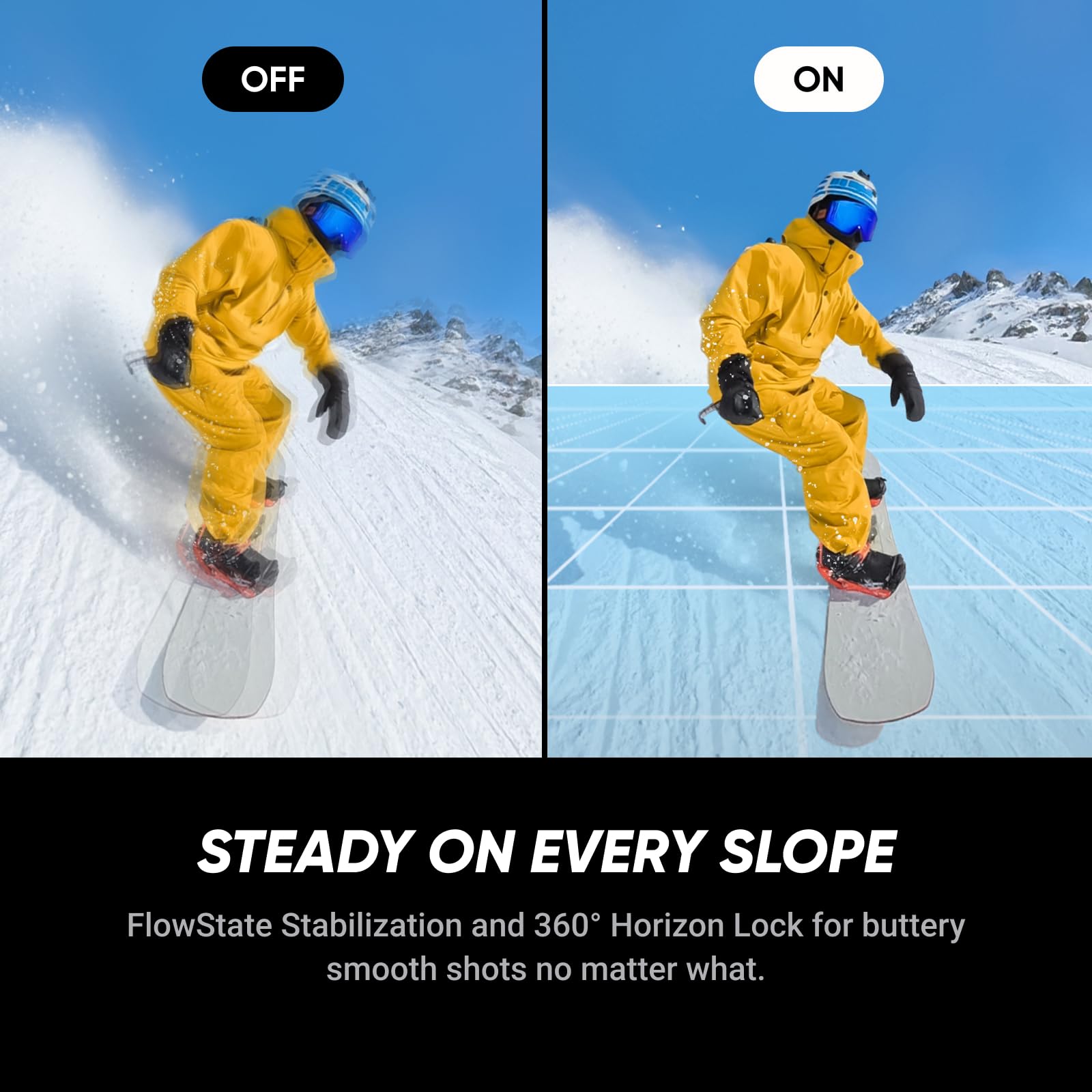 FlowState Stabilization + 360° Horizon Lock: No gimbal needed. X5’s FlowState Stabilization and full 360° Horizon Lock deliver buttery-smooth, level footage, even during action-packed moments, bumps, or full rotations.