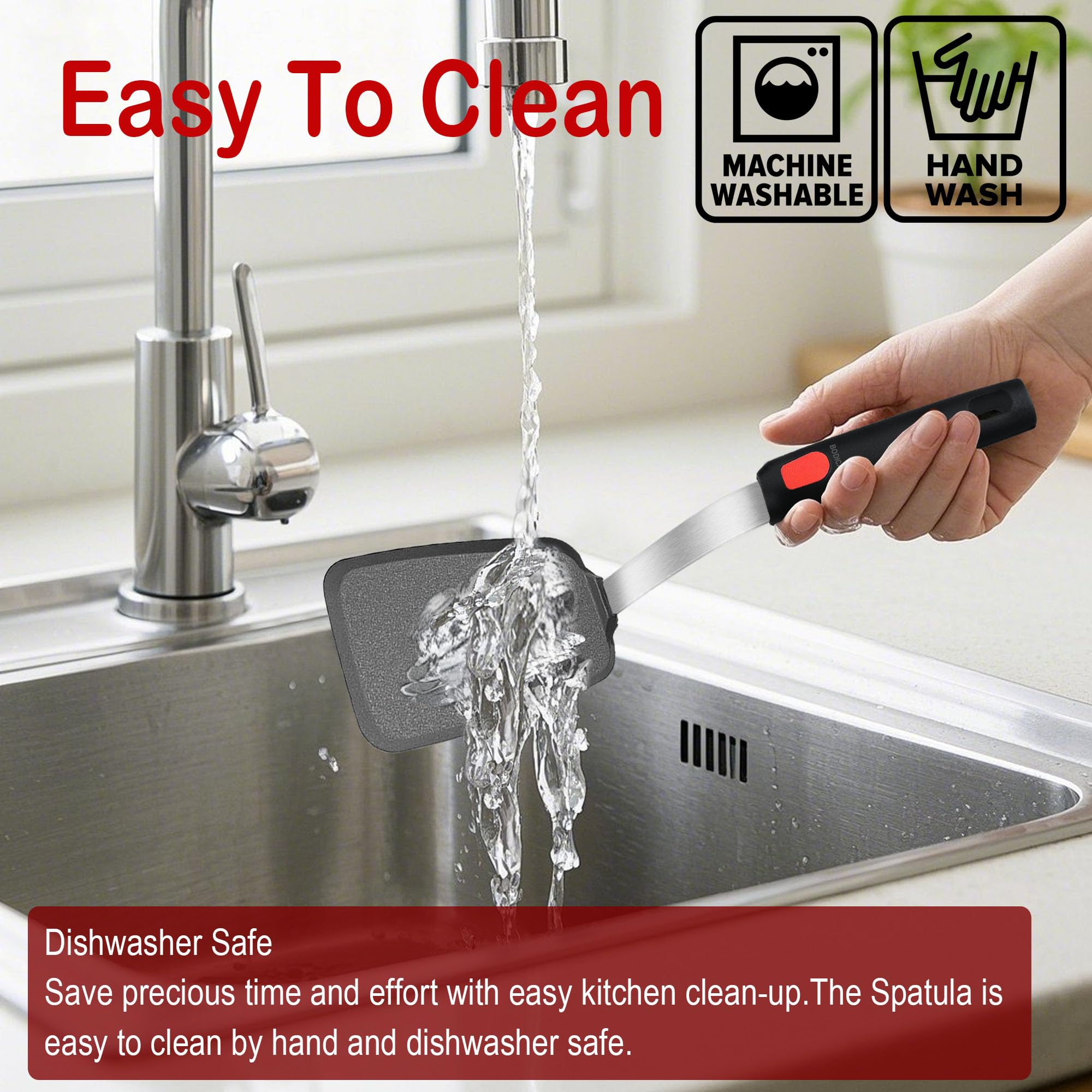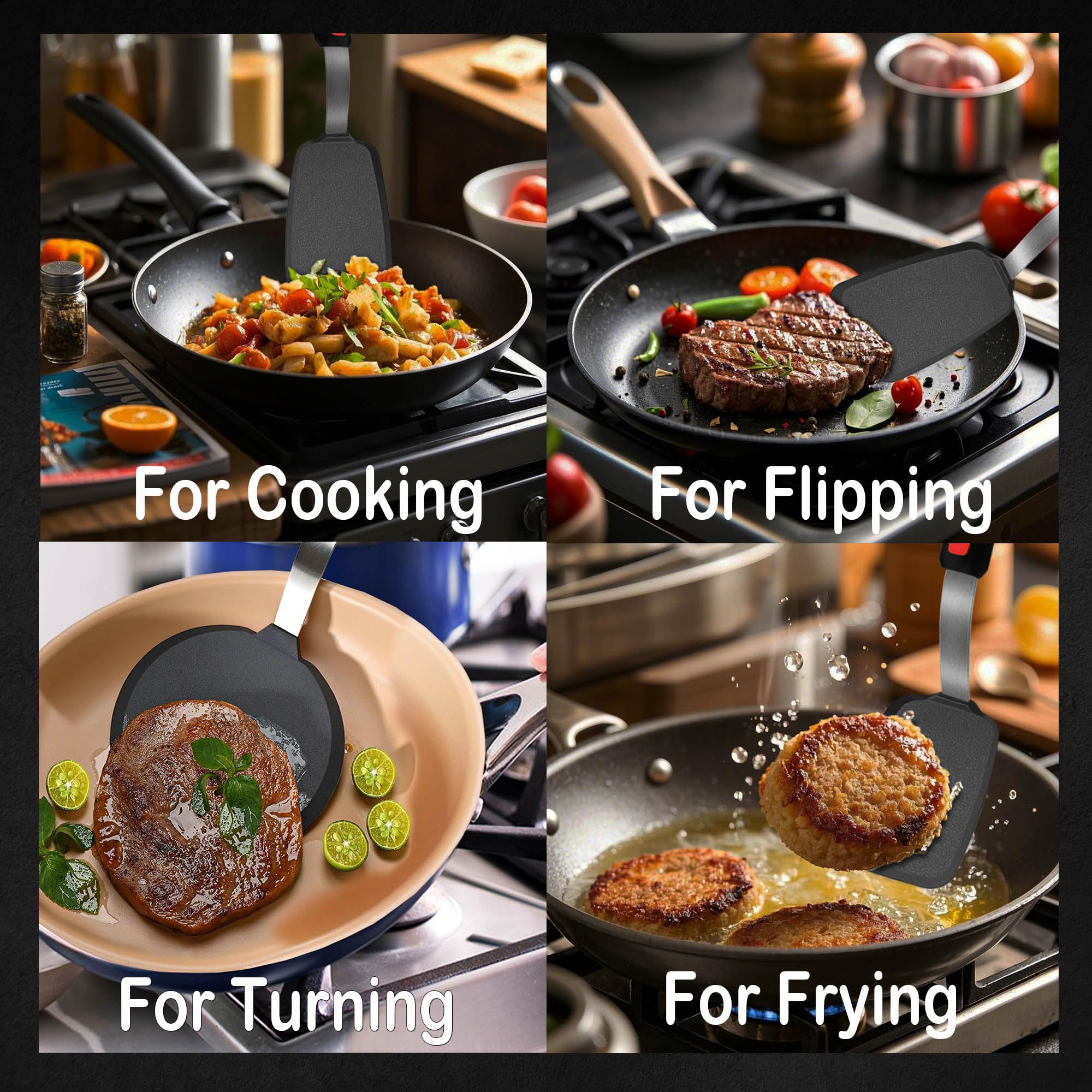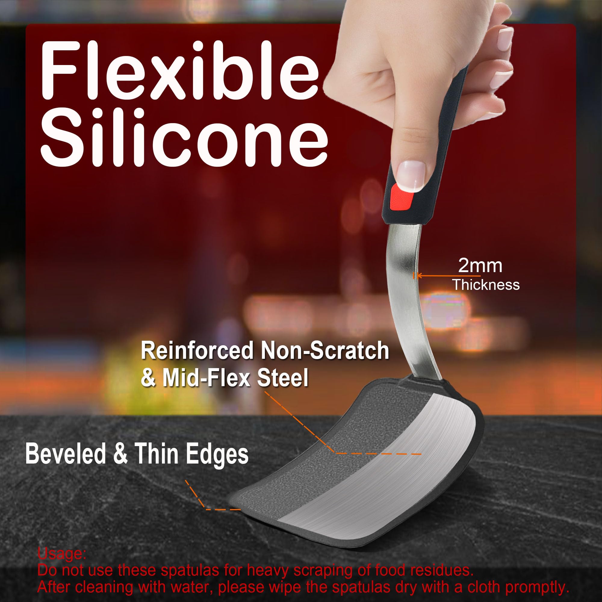 SILICONE SPATULA SET - Pack with 2 large pancake egg spatula set. Constructed with a easy grip nonslip handle, outer silicone layer bonded with a stainless-steel plate. Flippers for eggs, cookie, pancake, burgers, steak,crepes and more.