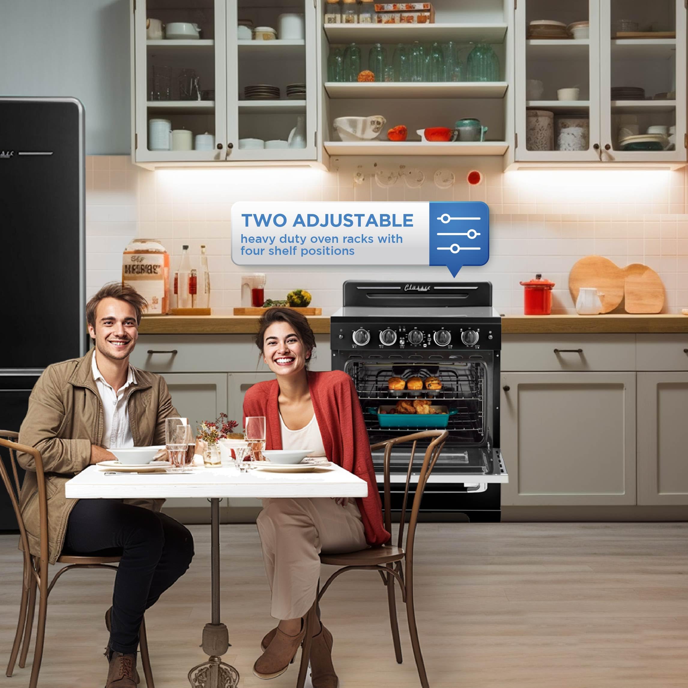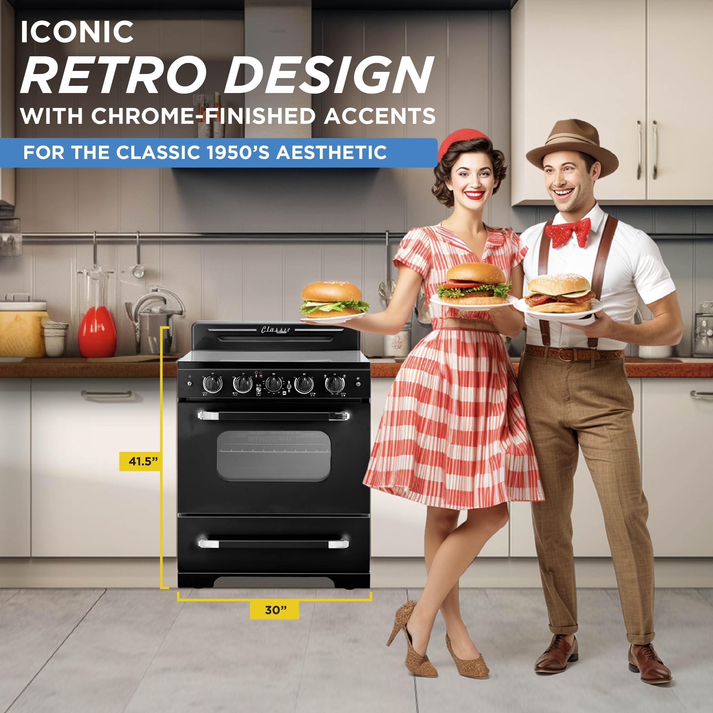 Retro Design: Featuring a retro design and chrome-finished accents, this electric range will add an iconic look to your kitchen or any cooking space akin to the '50s. Easy to keep clean, the range allows for easy maintenance.