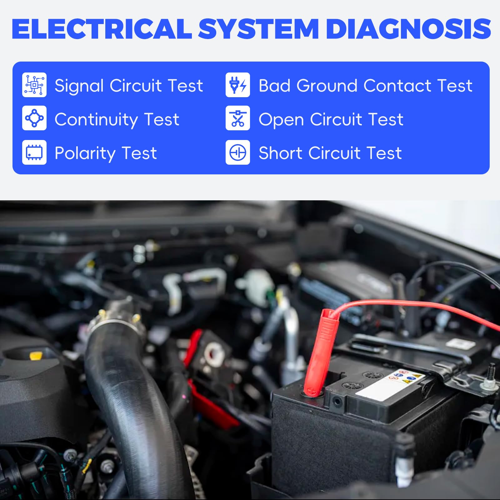 Autel PowerScan PS100 is short-circuit protected. Its internal circuit breaker will trip if it becomes overloaded. The circuit breaker is a valuable test tool as well as a safety measure to protect the tool from overload. To protect your components, Autel PS100 can also perform a quick self-test. After flipping the switch forward or backward, the LED light and tone will respond to quickly check its actual operating status.