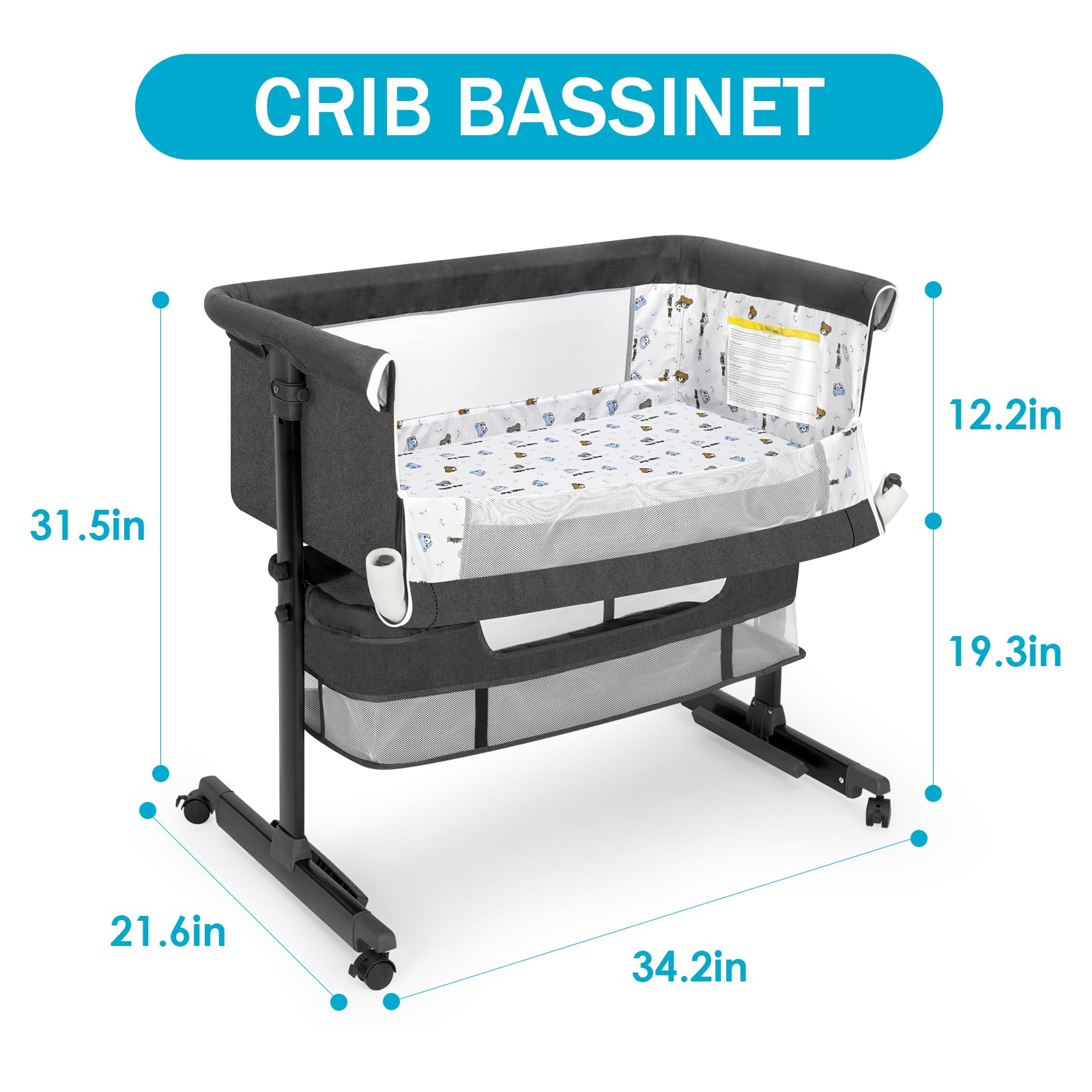 【Height Adjustment】The crib can be manually adjusted to adult bed height at any time and connected to the adult bed, allowing for easy monitoring of your baby's condition.