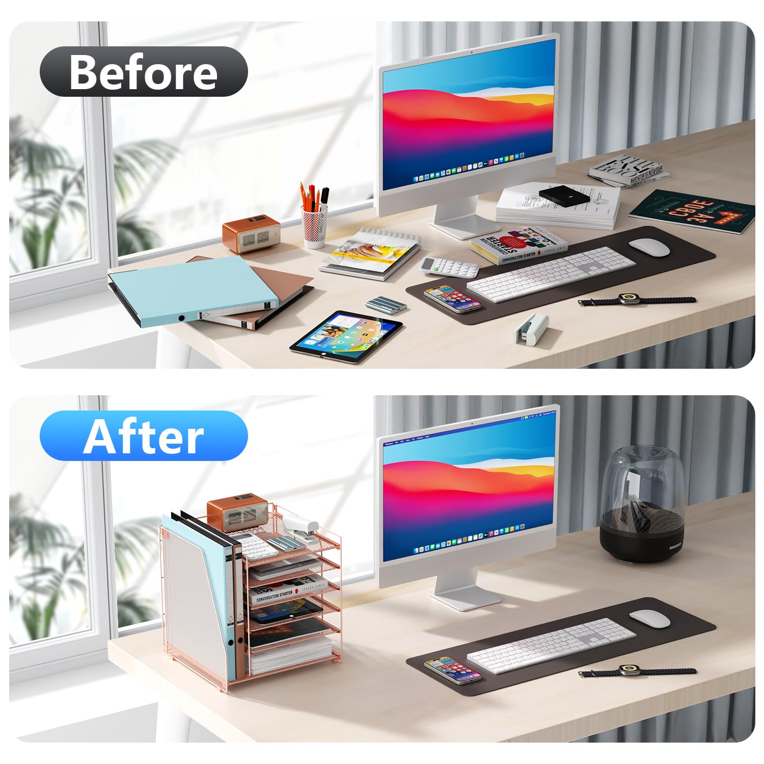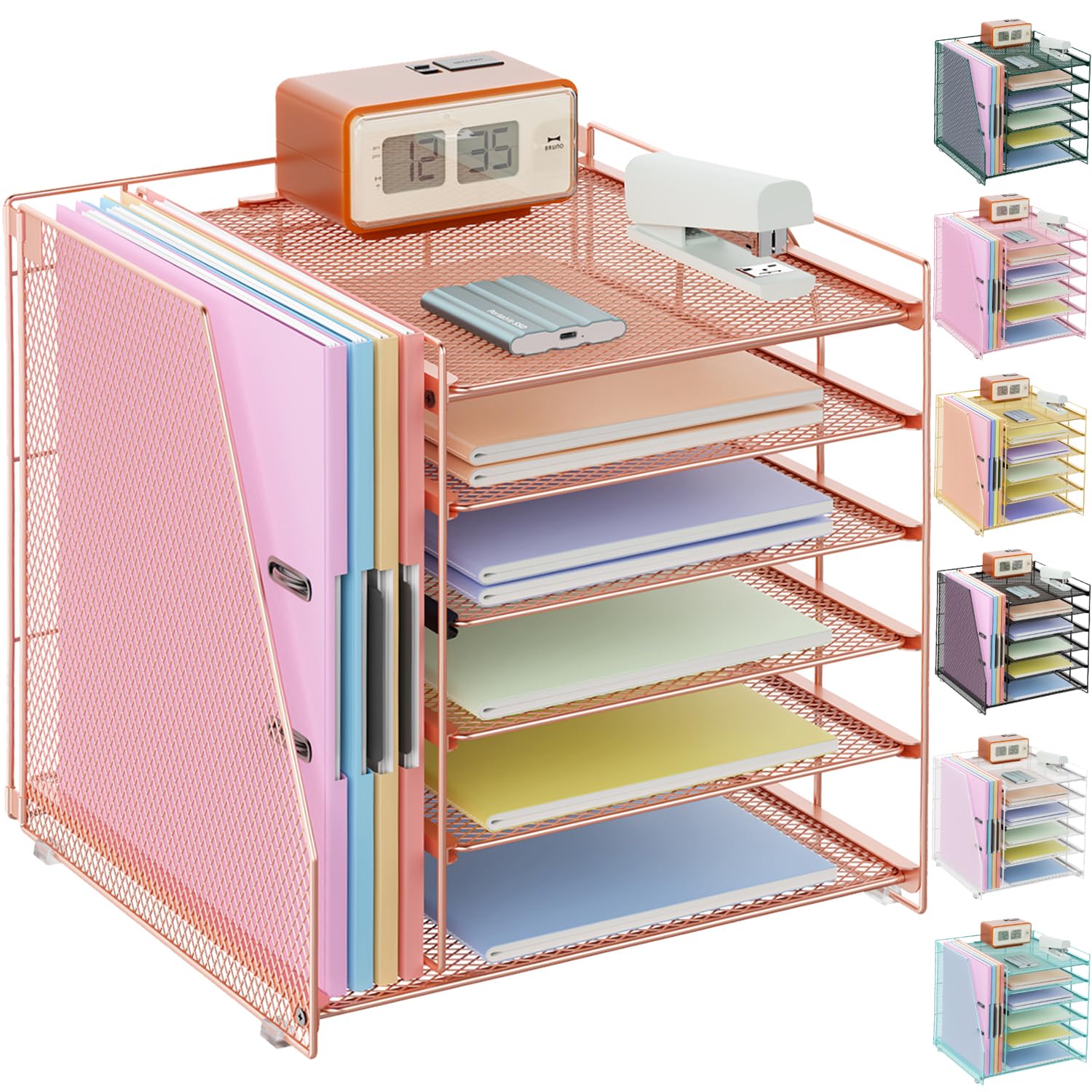 【Improve Efficiency】This desk organizer has 6 tray spaces and a magazine rack, allowing you to accommodate more files and office supplies. It helps you efficiently and quickly differentiate the contents of each compartment, making it easier to store and access items.