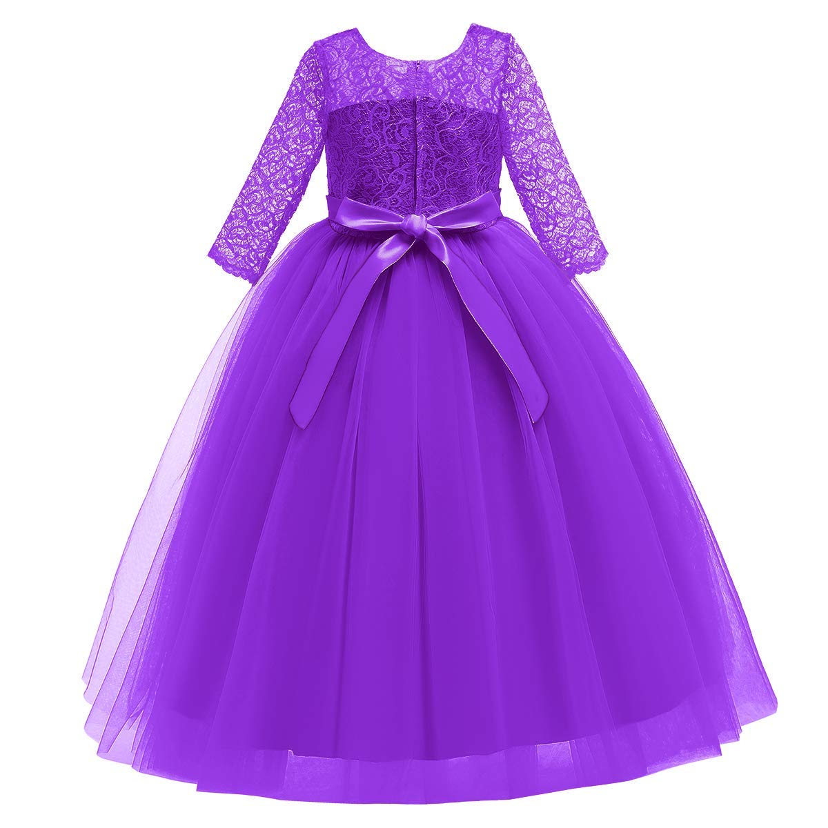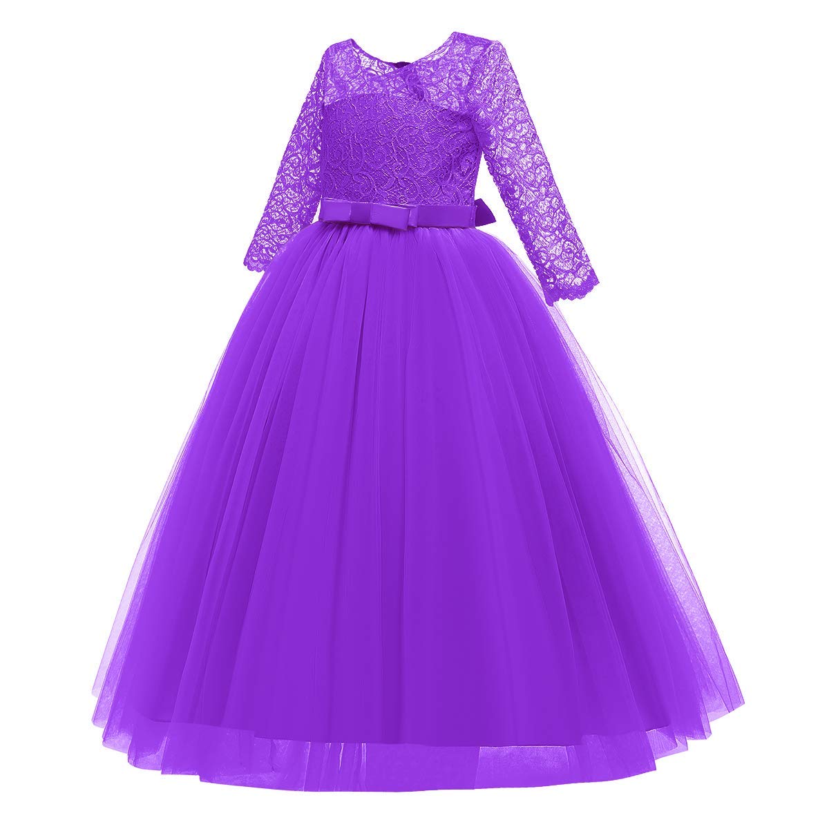 Size: Flower girls lace long maxi dress available for 2-14 Years child girl.Please refer to our size information in the below product description or the left picture for Detail Size Chart before ordering. Junior bridesmaid dresses for girls. Tulle lace layered dress with delicate flower and bow make your sweet princess to be the most graceful and shining girl in the crowd. Beautiful design features a chic style for your young baby and make your little fairy look so distinctive.