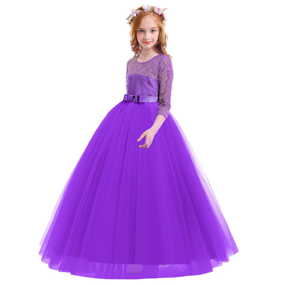 Design: Elegant flower girls dresses for weddings princess formal long maxi evening prom ball gown birthday party full length dress for kids junior girls, floral lace, hidden back zipper closure, featuring beautiful design. Your little princess will be thrilled with this gorgeous floral lace bow layered tulle tutu dress.