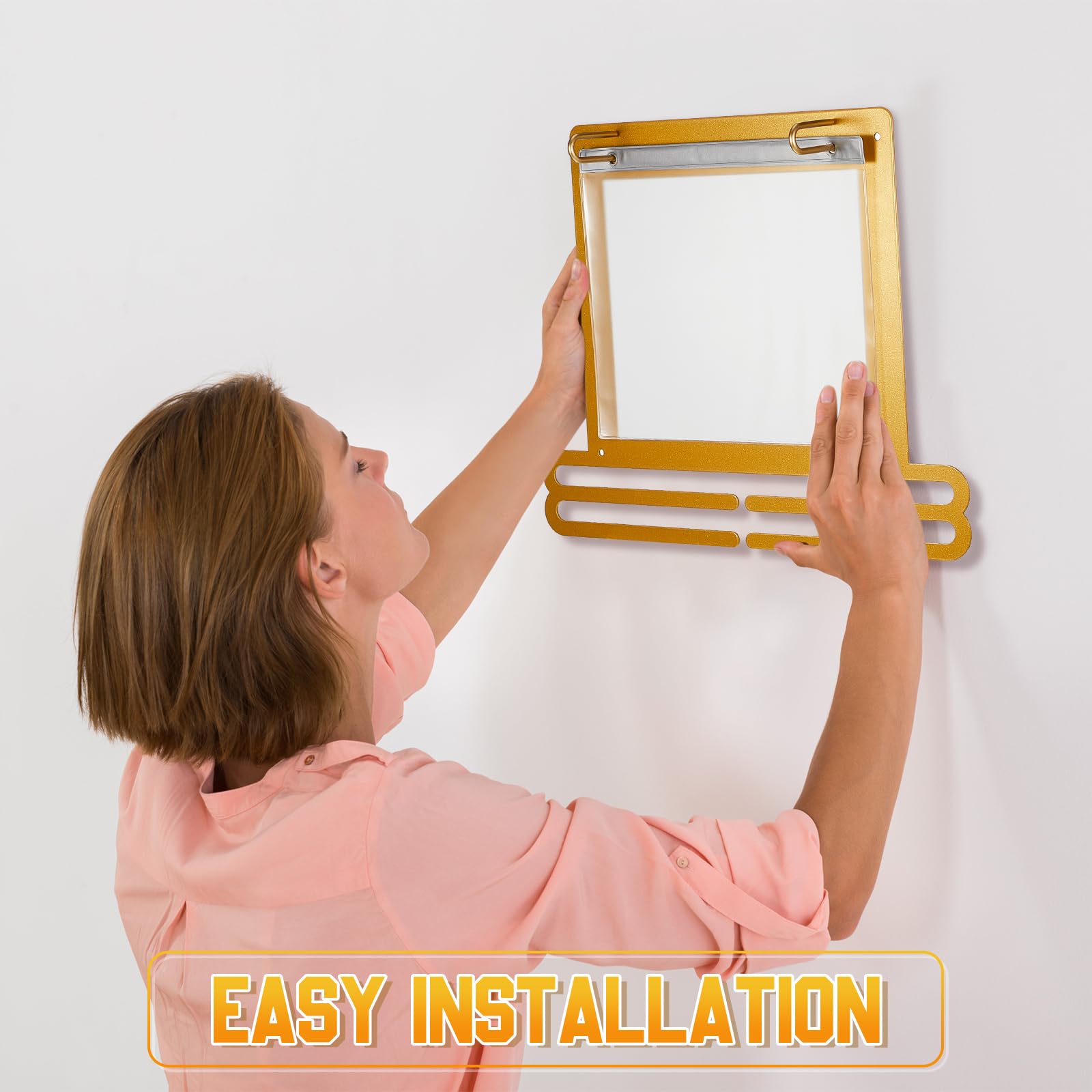 Convenient to install: the race medal display rack is designed for wall mounting to maximize space and keep your medals and bibs organized, the package comes with the appropriate mounting kit, you simply attach the rack and screws to the wall, then place the medals in the plastic bibs and hang them on the hooks, slide your medals onto the bars