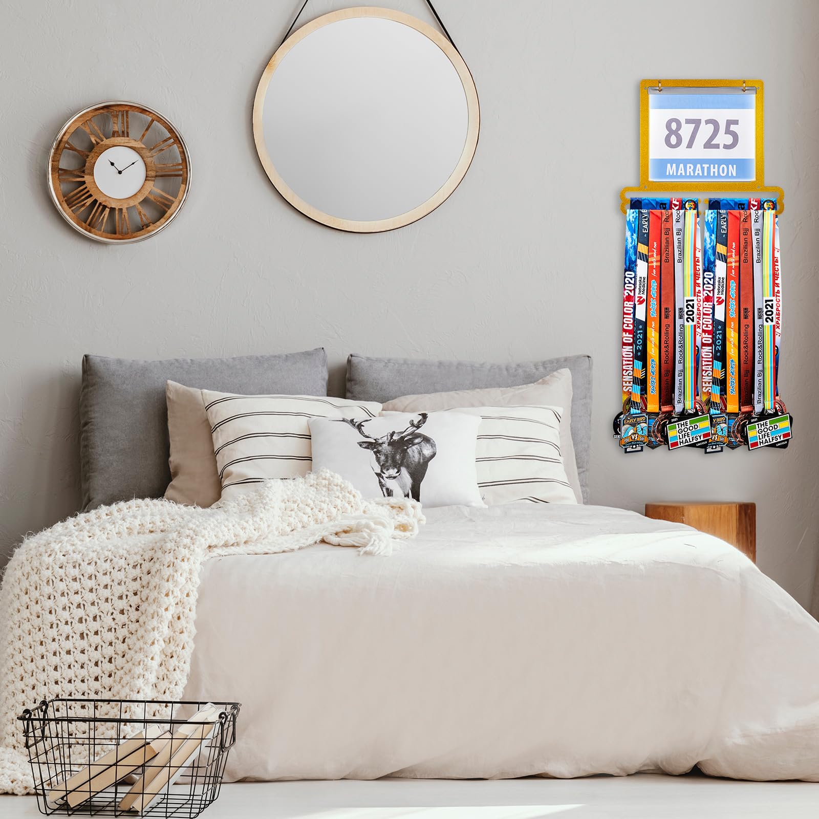 Show your pride: running medal display rack with bib holder protects and beautifully displays your collection of bibs and medals from various track and field races, 5Ks, road races, ultras and other sporting events and achievements to showcase your pride and record your accomplishments