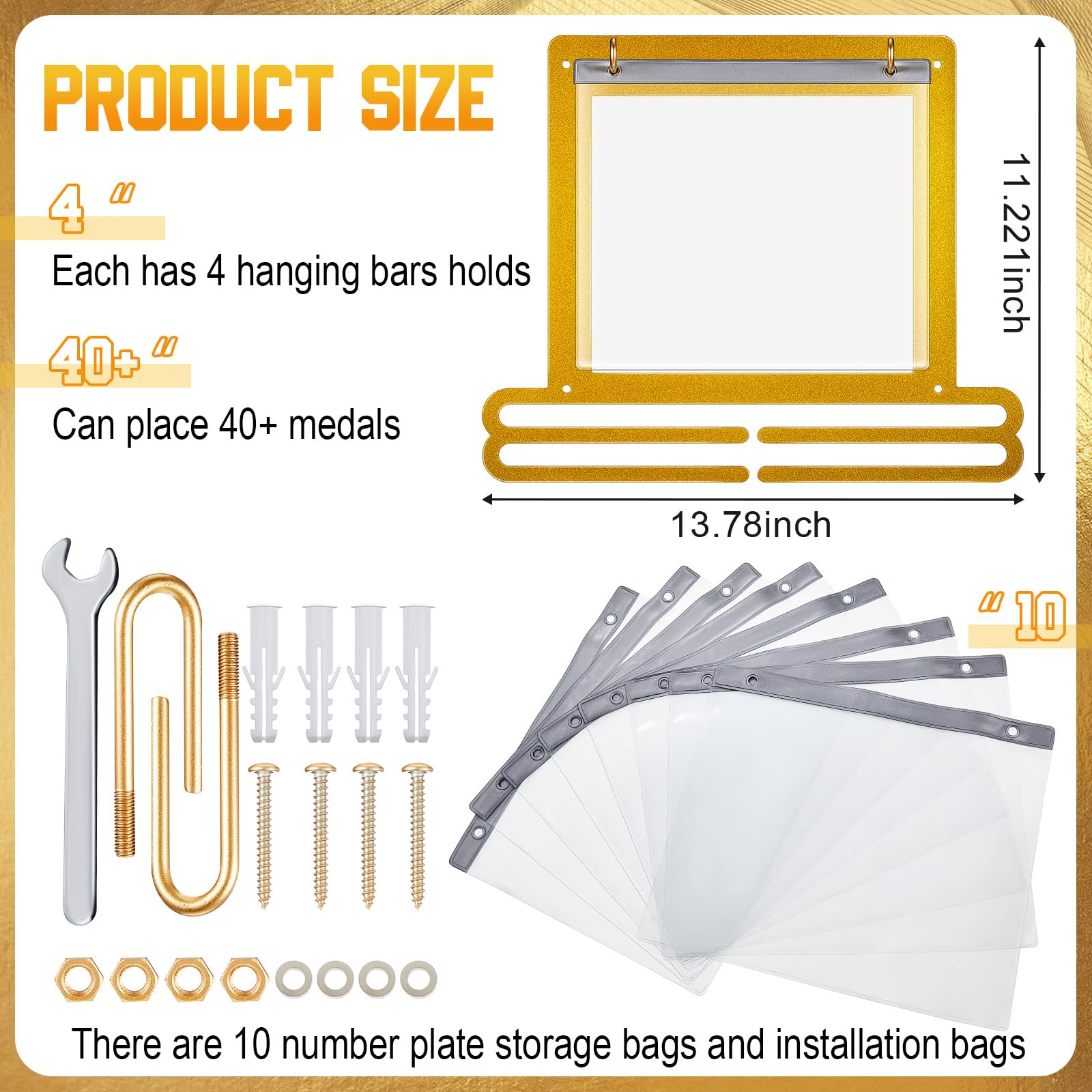 Package content: the package comes with 1 piece of race bib and medal display with 10 pieces race bib holder pouches, and the size is approx. 35 x 28.5 cm/ 13.78 x 11.22 inches, at least 20 number plates and 40 medals can be stored, enough quantity and practical design to meet your various needs for medal storage