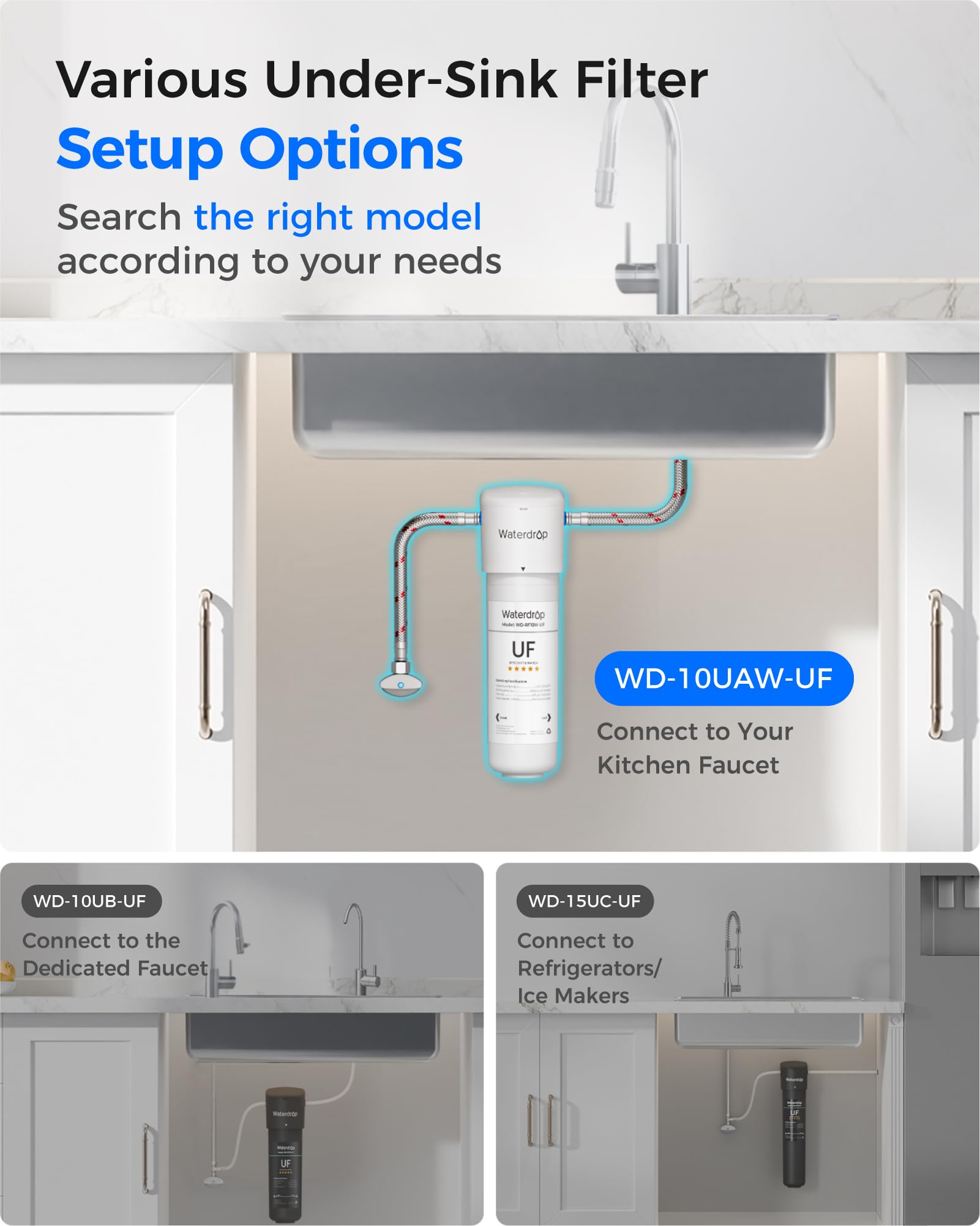 Waterdrop 10UAW-UF 0.01 μm Ultra Filtration Under Sink Water Filter System, 1 Year, Reduces Lead, Chlorine, Bad Taste & Odor, Direct Connect to Kitchen Faucet, USA Tech