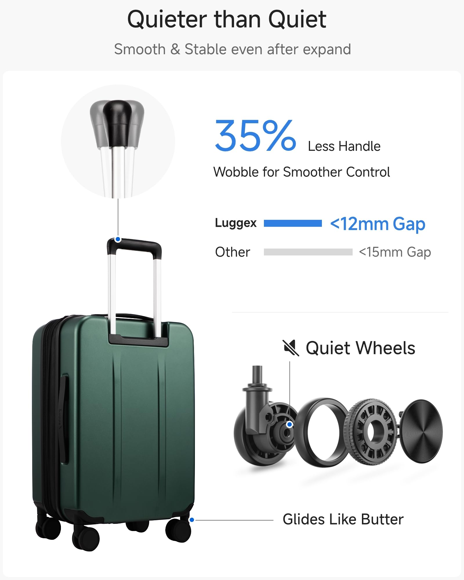 【LUGGEX's Commitment to Quality】LuggeX green suitcase comes with a free 3-year protection plan. Our dedicated customer service team is ready to assist you within 12H if you encounter any issues with our reliable hard case luggage.