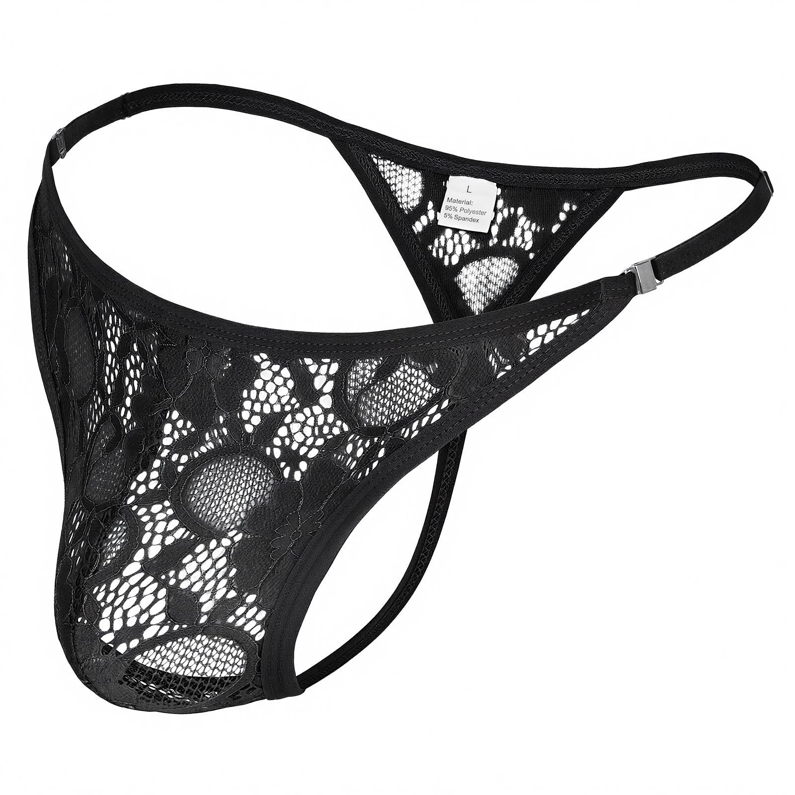 Men's sexy underwear low waist g-string lace floral sissy underwear, v shape lace waistband.