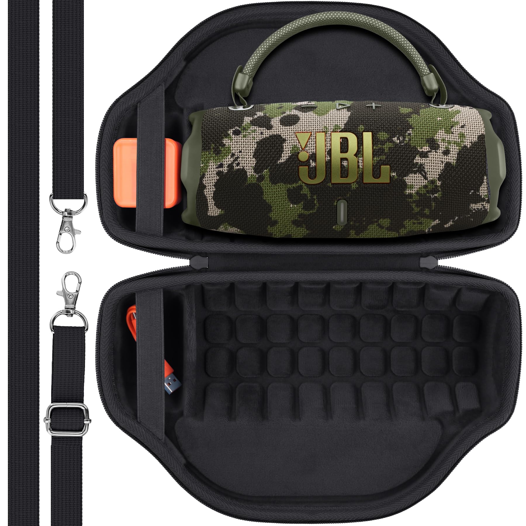 Please note that this product is a hard CASE ONLY (Hard Case + Shoulder Strap). bluetooth speakers Charge 6 and speaker Charge 6 accessories are not included. The case is designed specifically to fit your Charge 6 portable bluetooth speaker snugly, providing secure storage and protection. This case is compatible with Charge 6 speaker. Please ensure that the model of your Charge wireless bluetooth speaker match the inner size of the case for a proper fit.