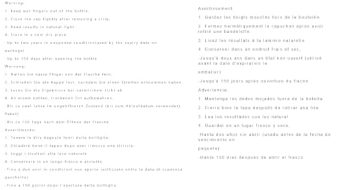 TIPS FOR ACCURATE RESULTS: Keep wet fingers away from the strips. Read under natural daylight for best results.Store in a cool dry place.The expiration is 2 years from manufacture. Once opened, use up in 90 days.