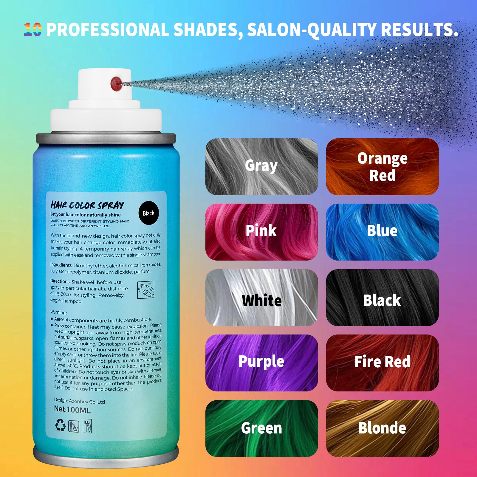 Vibrant Colors: Choose from 50+ bold shades like Purple, Pink, Silver & Blonde. This temporary hair color spray lets you experiment or cover grays for Halloween, parties, or daily fun. Express yourself in seconds!