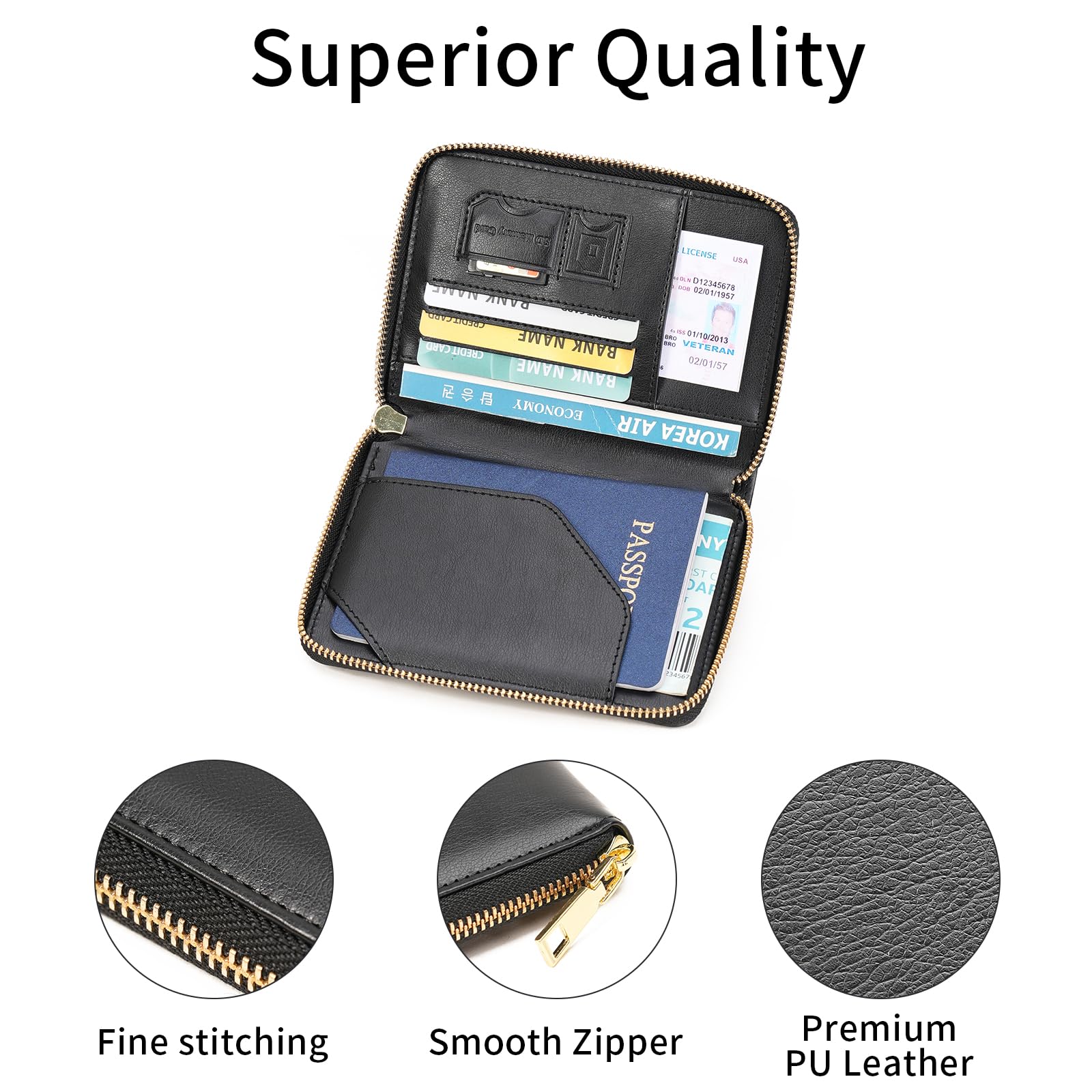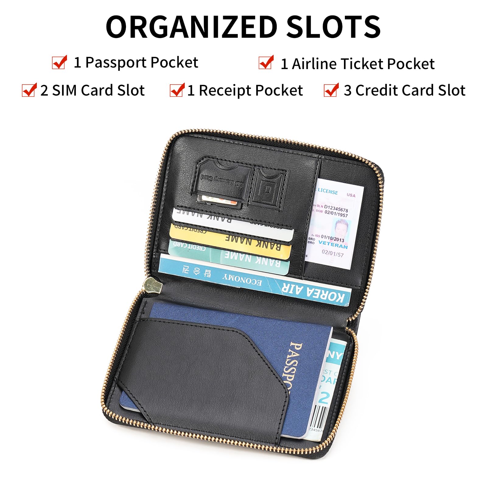 Multi Functional Passport Wallet:This passport holder is designed with passport slots, credit cards slots, boarding pass slot, SIM cards slots, and other essential travel documents. The zip pocket keeps your information secure,making it the perfect travel organizer for trips