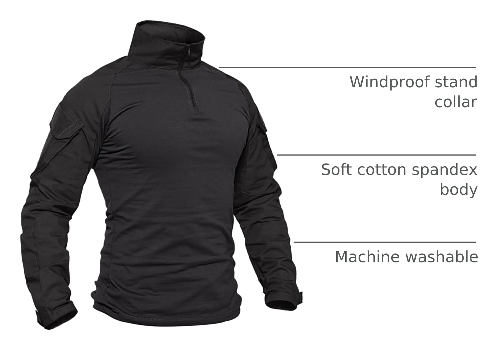 【Versatile Tactical Style】: This shirt is especially suitable for tactical-related uses, such as military, combat, airsoft, security, paintball, and army use, providing unrestricted wear under tactical vests, jackets, coats, and hoodies.
