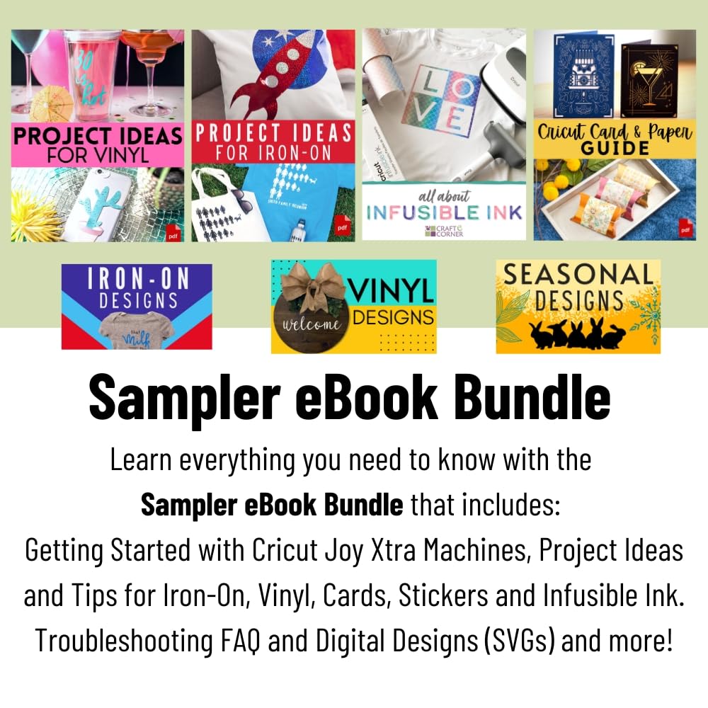 Instructional Guide: The Cricut Joy Xtra Guide is a full-color ebook, with everything you need to learn about the Cricut Joy Xtra, set-up, troubleshooting and Design Space. It features projects for labeling, vinyl, cards, sticker making and more. Dive in deeper and learn about specific materials with the included material guides. Each are filled with project inspiration and includes digital design files (SVGs) (Print copy unavailable). Check the flyer in the box for how to access your guide!