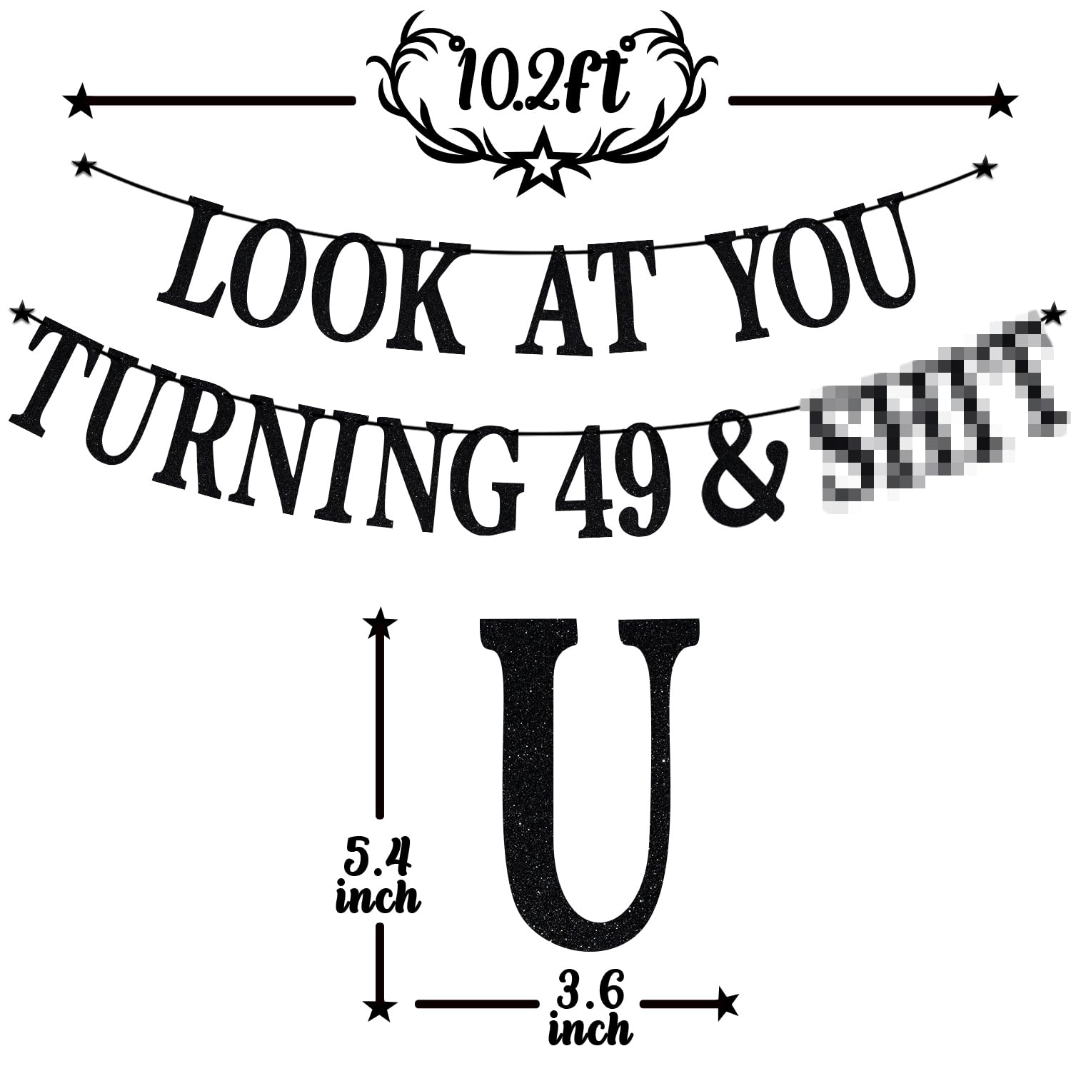 Received included: Letter cards spelling the phrase "Look at You Turning 49 & Sh*t". Awesome decorations: It is very suitable for the 49th Birthday party. Special party decorations can add an enjoyable and active atmosphere to these scenes, leaving a happy and unforgettable memory. High quality: Banners are made of glitter premium cardpaper. They are rigid and reusable. Easy to DIY: The card and the rope are separate, you only need to spend a little time to assemble. Choose us and believe us: We support the concept of customer first and product first. If the quality or damage occurs during transportation, we will solve it.