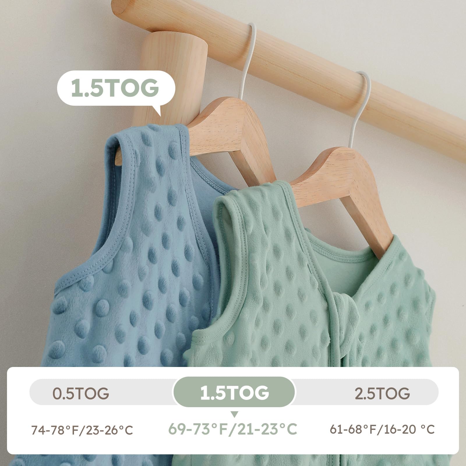 Softness and Warmth - Yoofoss baby sleep sacks made with 2 layers, plush fabric and 100% cotton Lining, super soft and smooth, ensure baby's warmth and a cozy embrace. 1.5 TOG sleep sack is suiable for moderate temperatures from 69 to 73°F as an ideal option for autumn,early winter and spring or taking a nap in air-conditioned rooms during the summer, keeping your baby snug and warm.