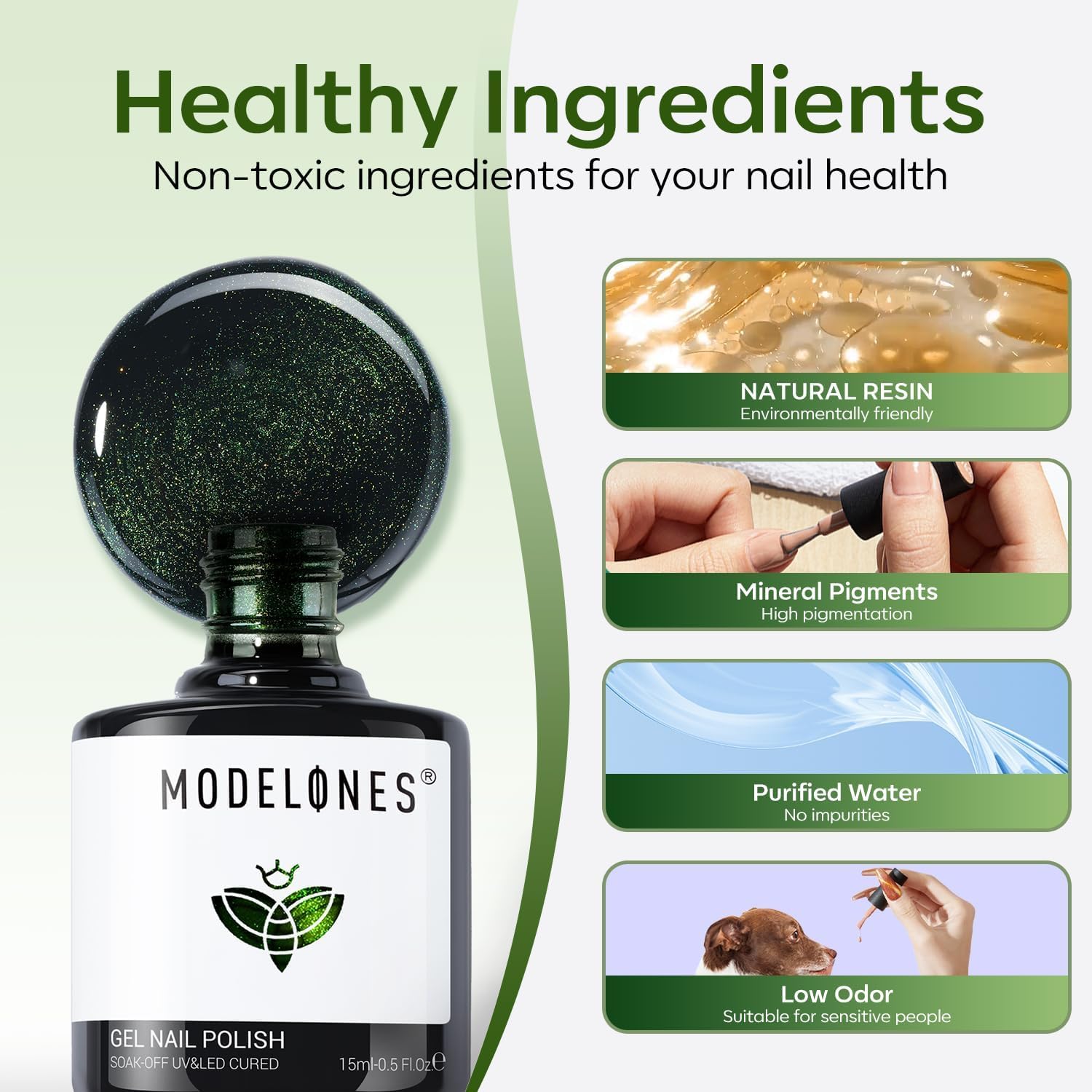 Healthy & Certified Cruelty-free: Modelones' Glitter Gel Nail Polish features 11 toxin-free ingredients that are safe and low odor. Free from harsh chemicals and adhesives, it prevents nail damage and is anti-chipping and skin-friendly. Perfect for any occasion, you can DIY your nails anytime with confidence