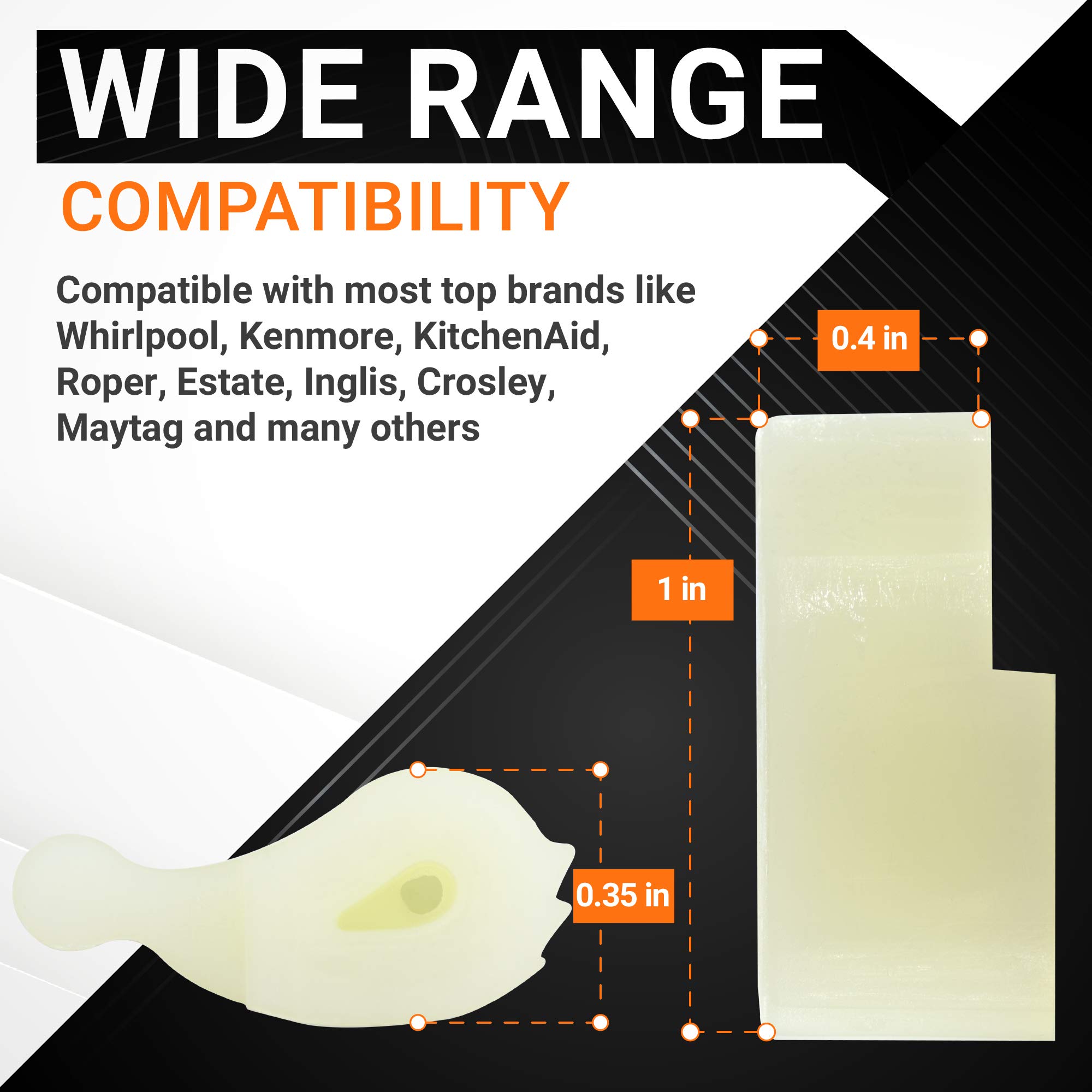 EASY TO INSTALL: It is made exactly fit for most top name brands (Whirlpool, Kenmore, KitchenAid, Roper, Estate, Inglis, Crosley Maytag) and replaces part numbers: 3366877, 387091, LP338, AH388034, EA388034, PS388034, 80040, 80040VP, 285612, 285770, AP3119063, ER80040, SB80040, 3109, TJ90LP338, 99989668.
