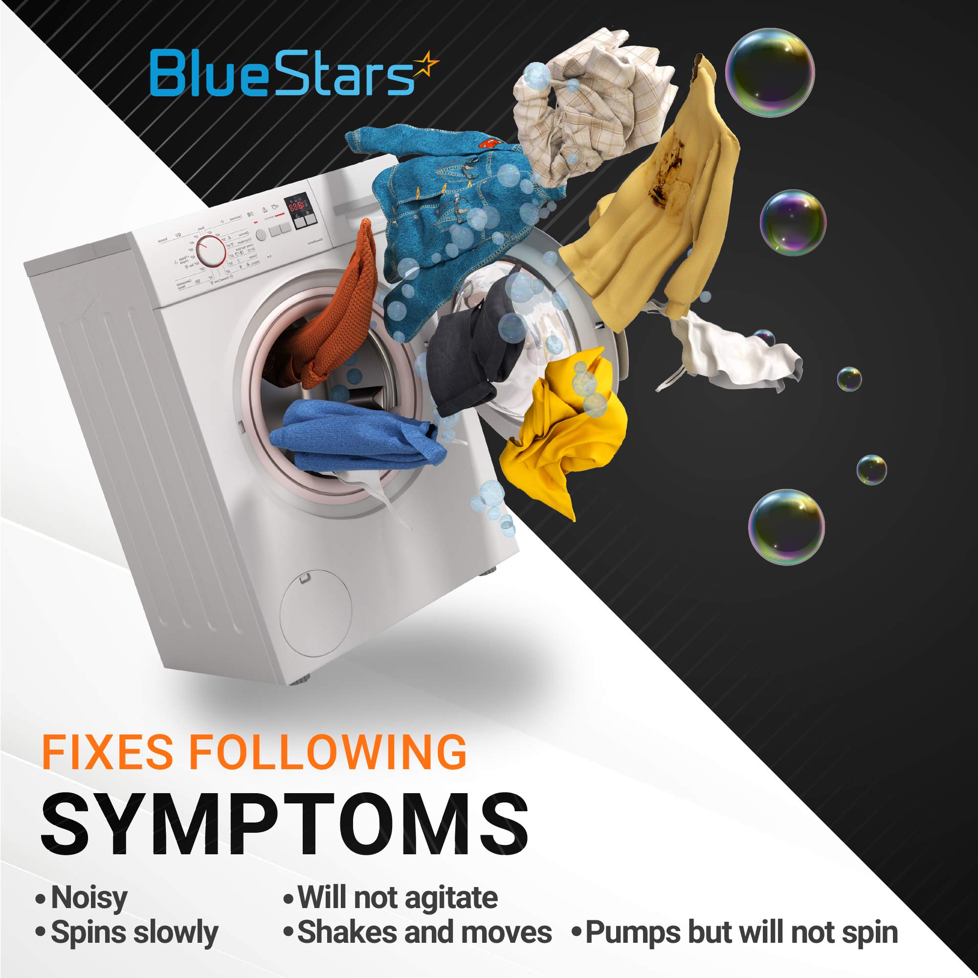 PREMIUM QUALITY: The replacement part is made from high-quality plastic and well-tested by the manufacturer - Meets OEM standards - Ensure long-lasting and effective performance. This part fixes the following symptoms: Will not agitate | Noisy | Pumps but will not spin | Spins slowly.