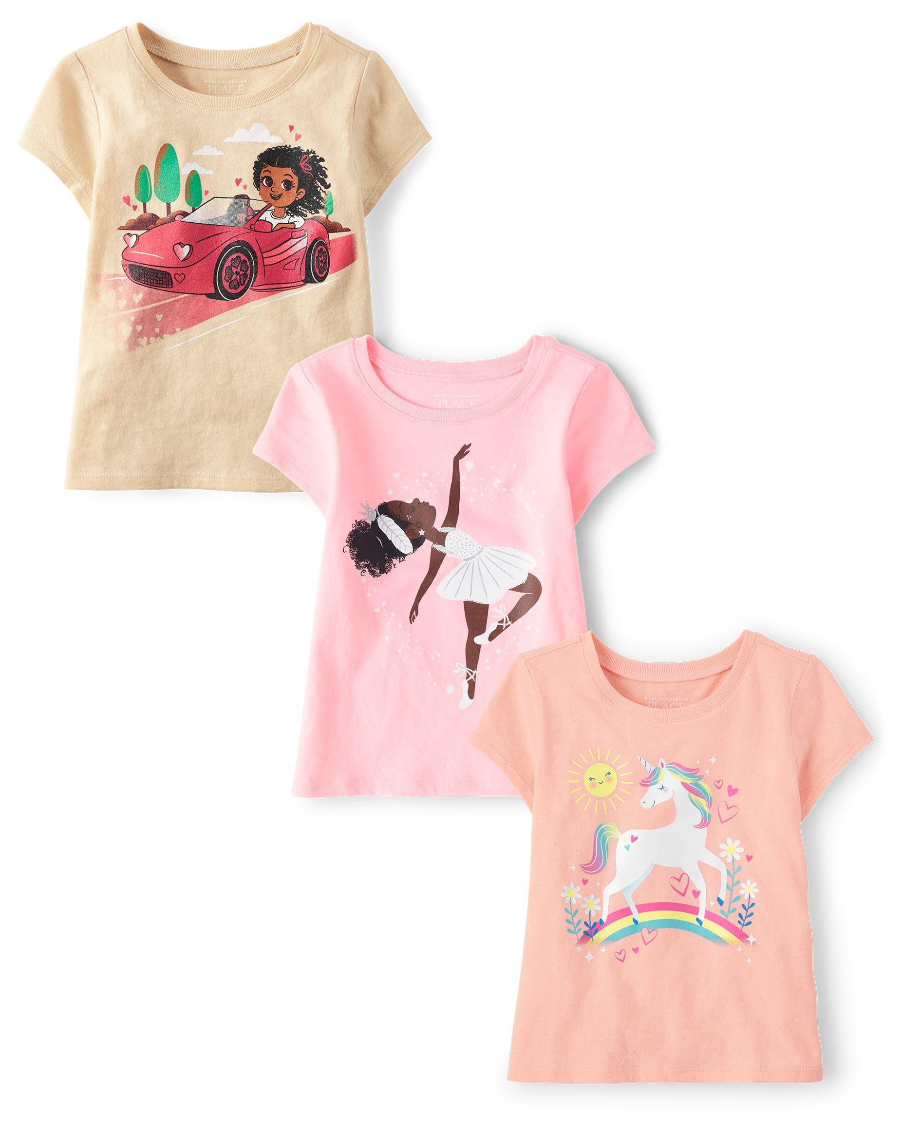 MULTIPACK: 1 unicorn with rainbow graphic design, 1 ballerina graphic design, 1 girl driving car graphic design