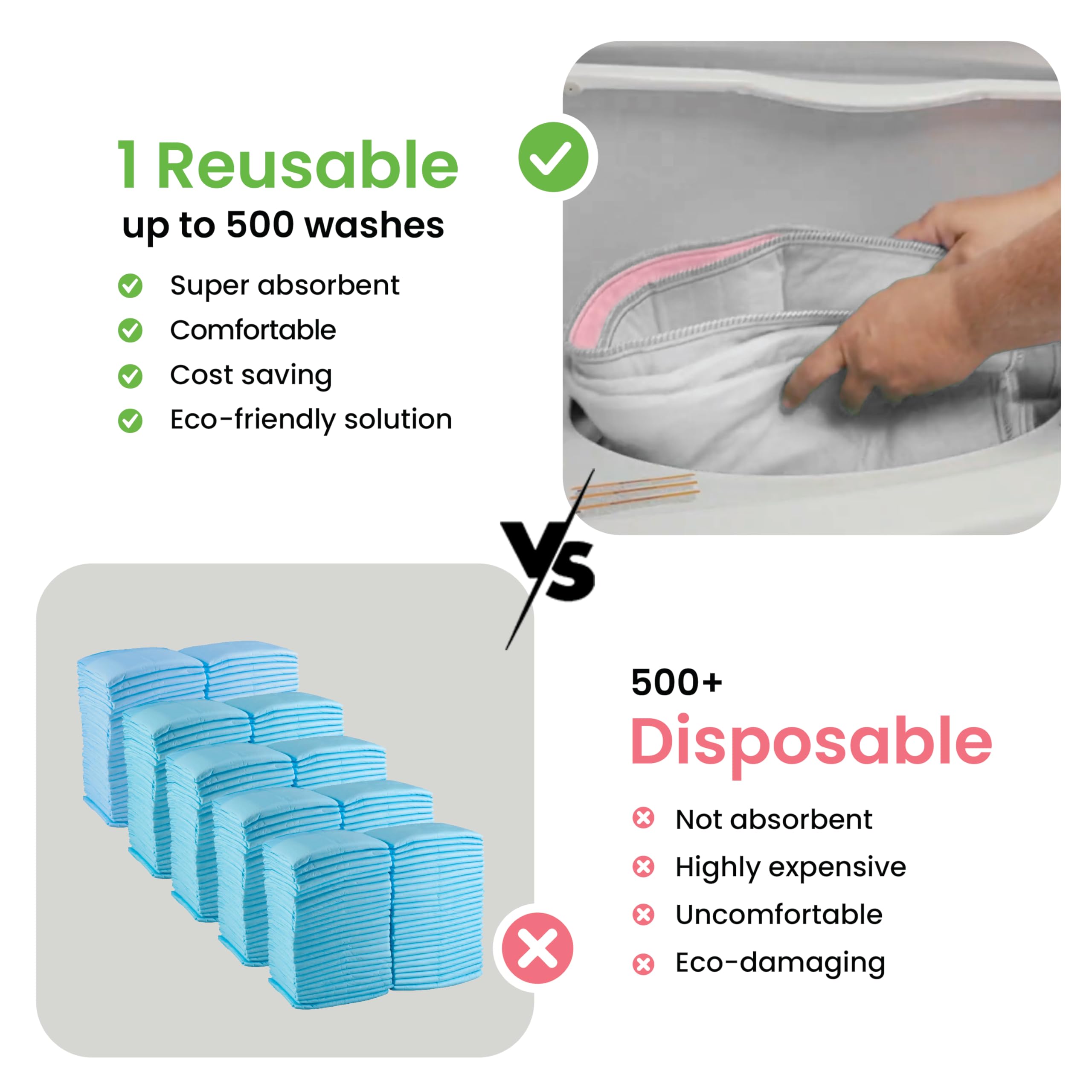 WASHABLE UP TO 500X - With our Reusable Bed Pads, you can get a more comfortable sleep as they stay in the correct position – keeping you and your bed dry all night long! They are 100% Washable and Stain-Resistant – saving you up to 500 Disposable Underpads!