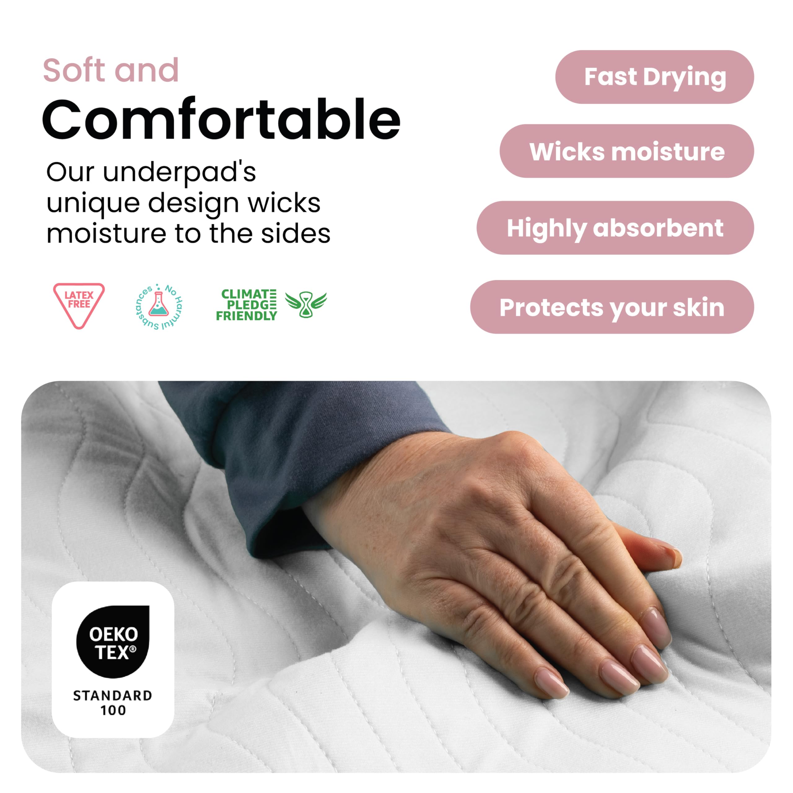 SAFE FOR SENSITIVE SKIN - Since this Underpad effectively absorbs fluids, such as urine, you can ensure that your skin is completely safe from wetness and rashes. Its super soft texture is highly recommended for skin care – protecting you against common skin infections.