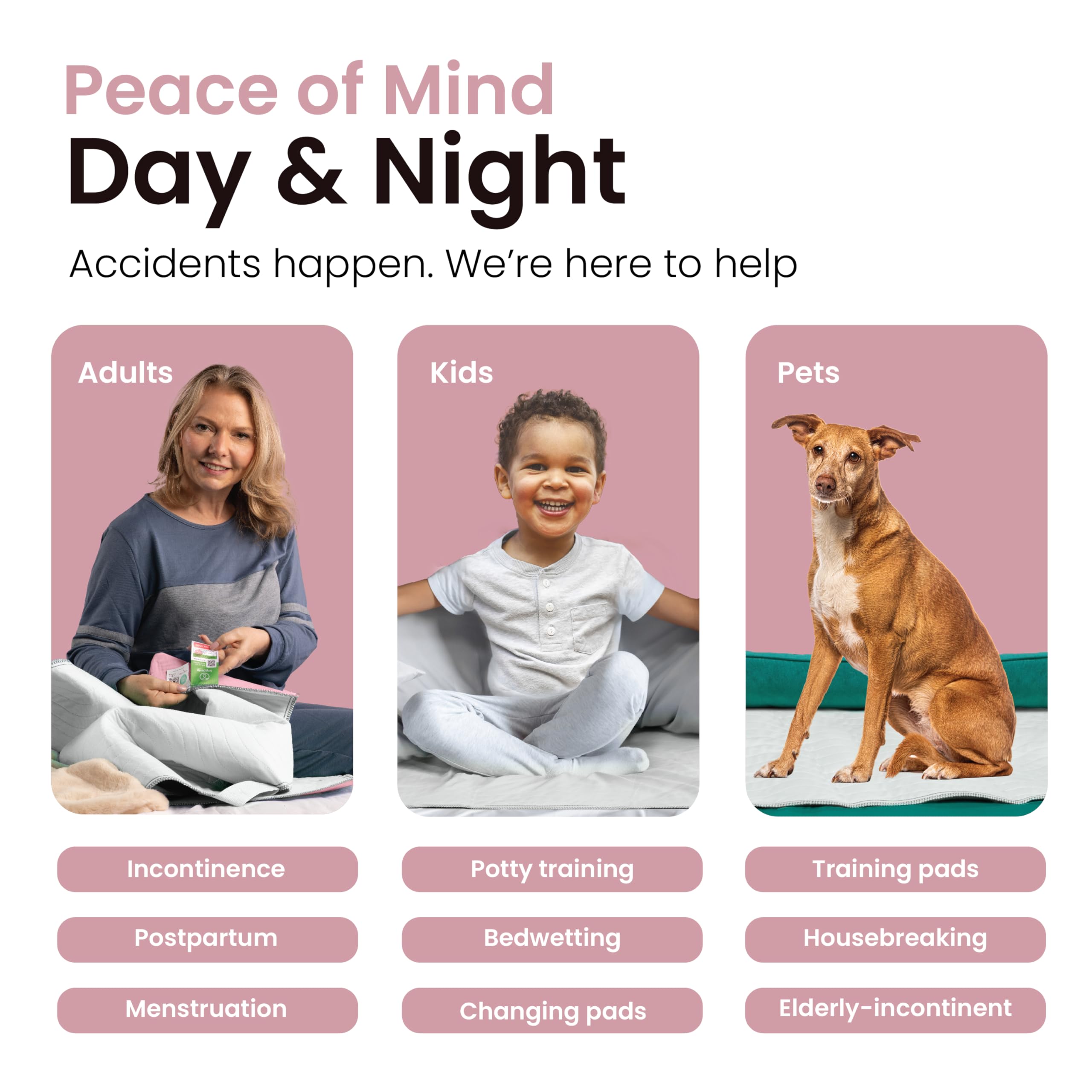 USES AND APPLICATIONS - Incontinence is no more a problem with IMPROVIA Underpad! It works perfectly for kids, adults, the elderly, and pets. Use it as a bed pad, pet pad, puppy pad, potty training pad, or pee pad and maximize your bed's or furniture's longevity.