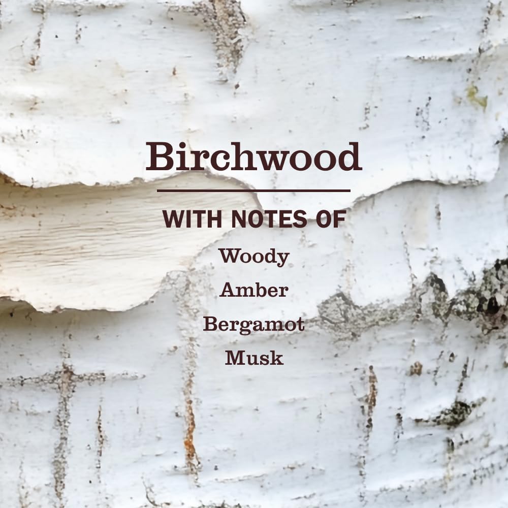 GARDEN-INSPIRED SCENTS: The beauty of Birchwood runs deep. The snow-white bark wraps wood of fine grain and a clean scent. A sweet gift from forest to home. With scent notes of: woodsy, amber, bergamot, and musk