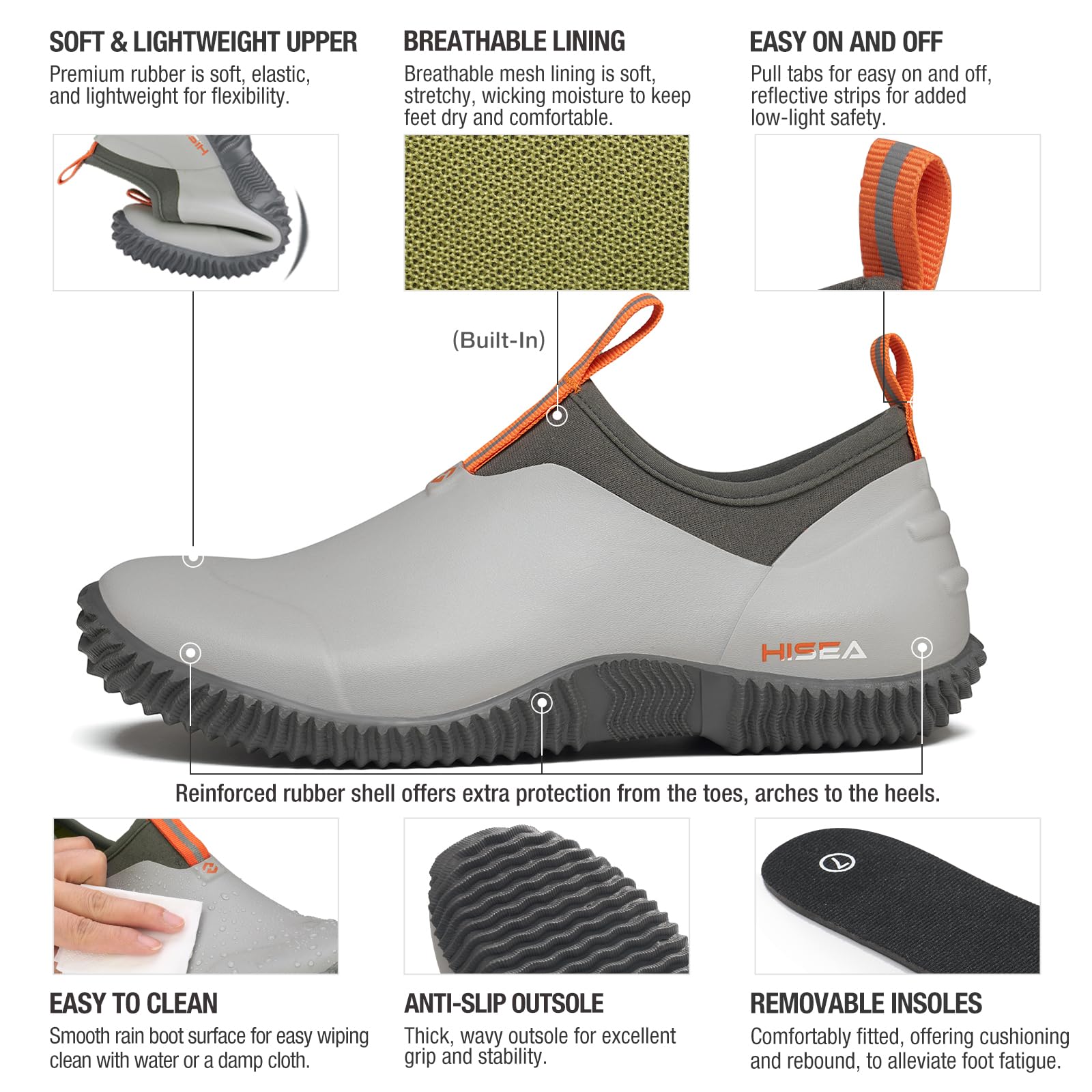 [Breathable and Comfortable]:Breathable mesh lining wicks away moisture and sweat, ensuring airflow within the shoe. The low-profile silhouette design offers a better fit, while the elastic collar effectively keeps out debris and rainwater, ensuring comfort during wear.