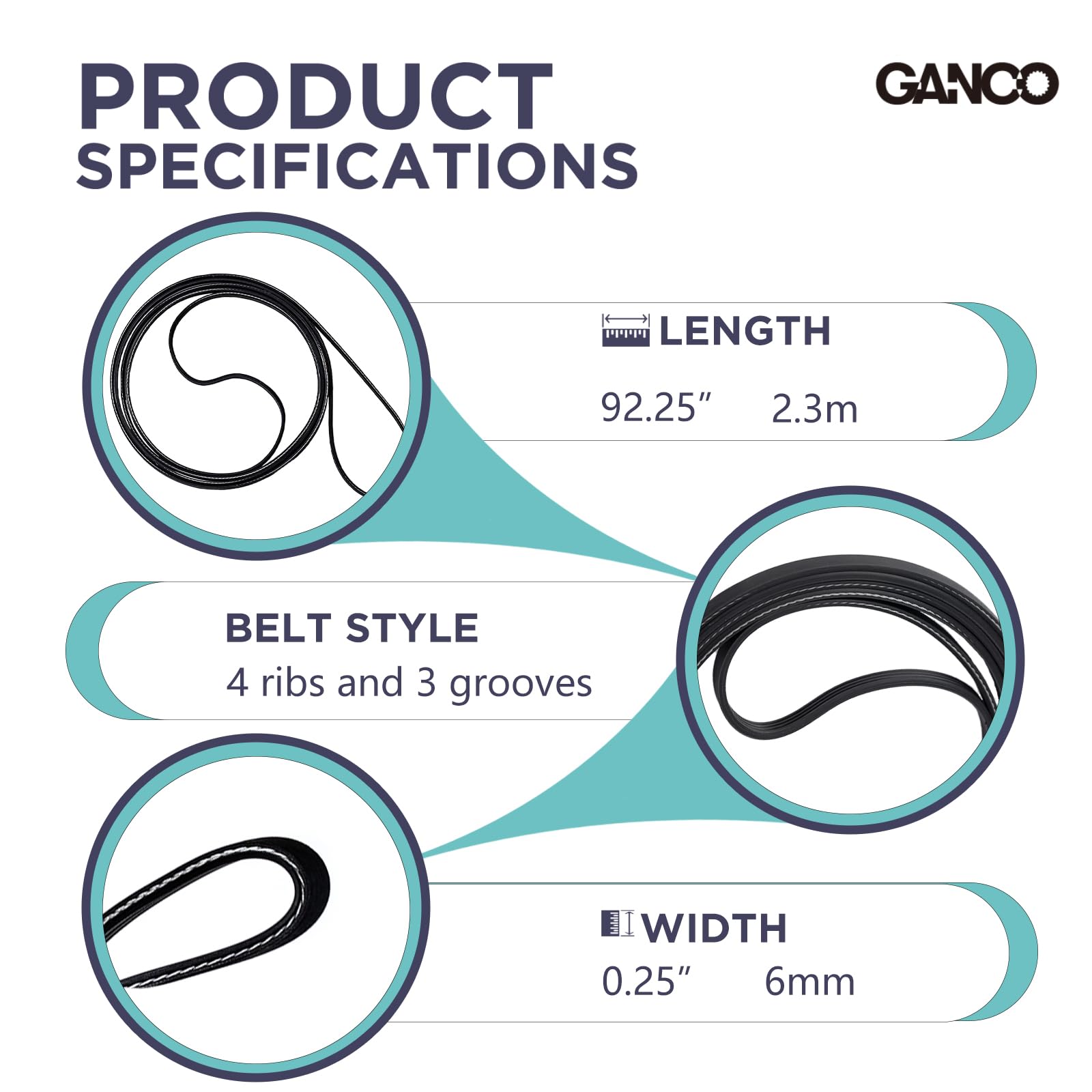 Material:made of rubber, durable and high quality, with 4 ribs and 3 grooves; make sure the grooves are facing down against the drum, when you are installing the belt. The grooves of belt are directly pressed, paying more attention to quality and flexibility than ordinary commonly ground slot belts, greatly reducing the tear and wear of the belt and machine.