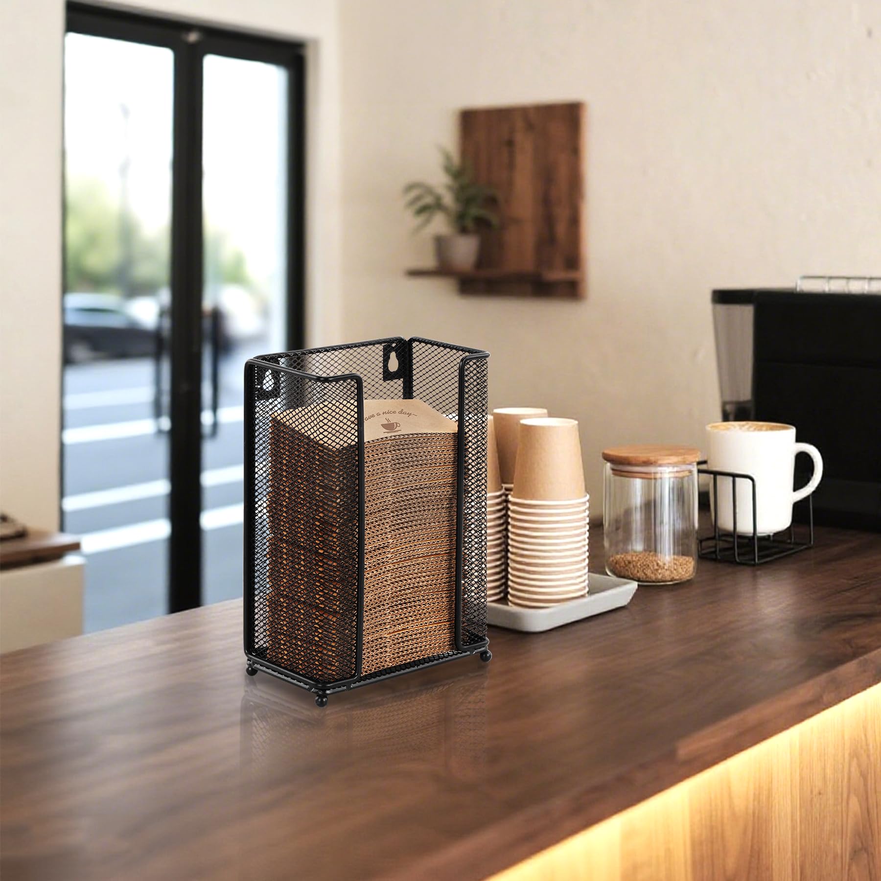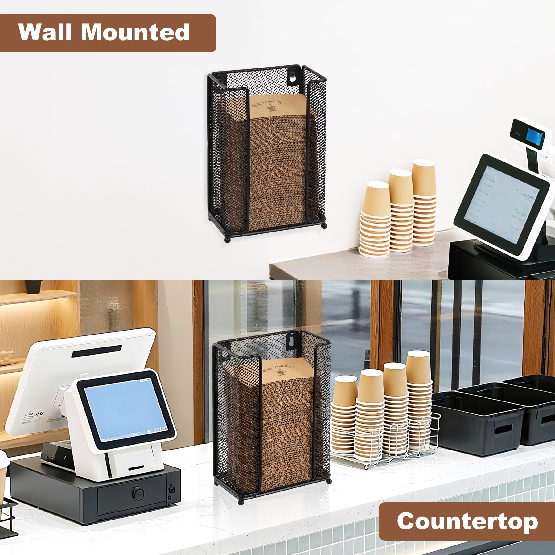 Countertop: The paper cup sleeve organizer has a sturdy base with 4 metal ball feets, allowing you to place it on your coffee station countertop. The 4 metal ball feets keep the bottom ventilated and dry, keeping the paper cup sleeves clean and allowing you to use it in different situations.