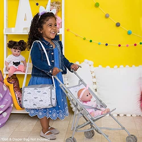 As a parent, finding ways to engage your child in imaginative play and encouraging them to unplug from screens can be challenging. Adora has been helping parents do just that for over 30 years by creating toys that inspire creativity, develop empathy, and spark the imagination. Twinkle Stars Doll Stroller is the perfect accessory for your little oneβs imaginative playtime! With its charming cloud and glitter star design in soft white and gray, this baby doll stroller is sure to become a favorite. The Adora belt keeps baby dolls secure, while the strollerβs compact size makes it easy to take on the go. Whether your child is a fan of Adoraβs PlayTimeβ’ and BathTimeβ’ Babies or any other dolls, stuffed animals, or plush toys up to 18 inches in length, this stroller is perfect for all their adventures.