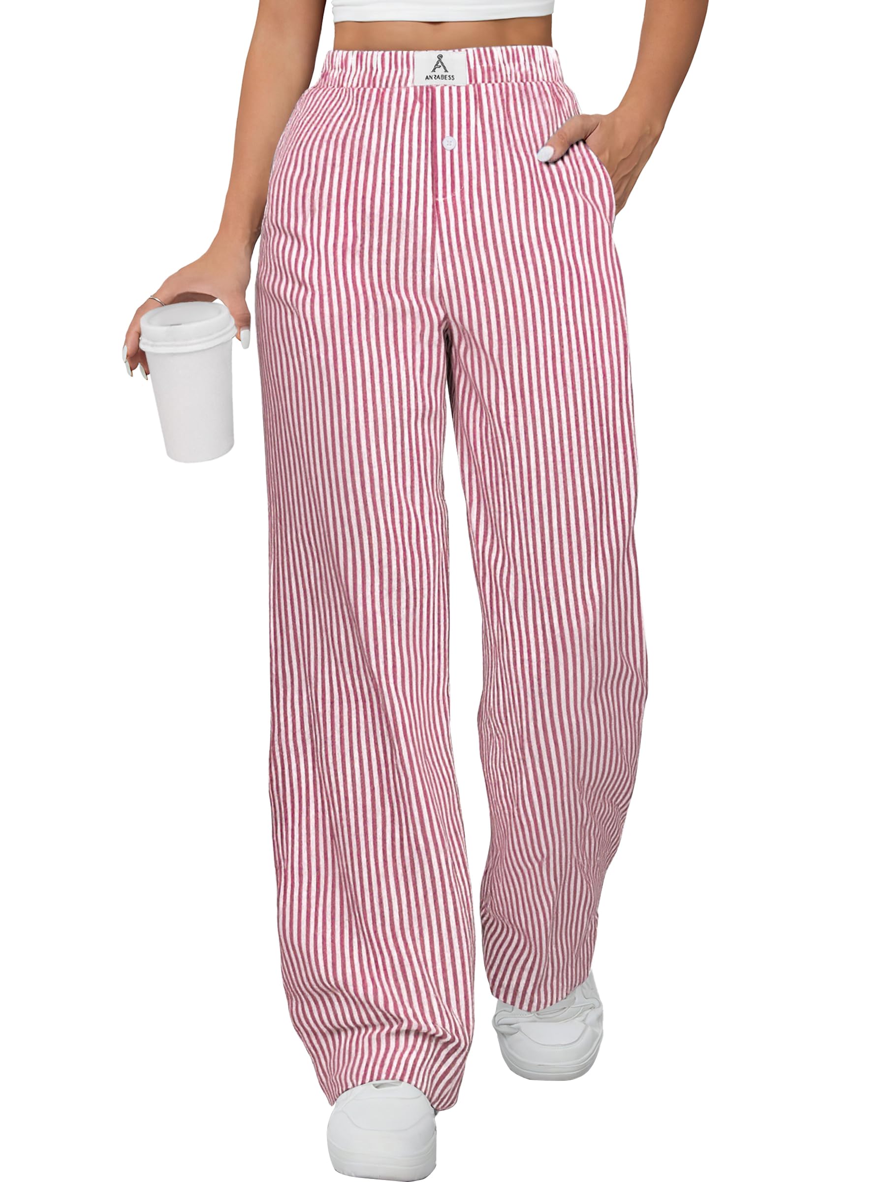 Features - Women's fall pajama pants, lounge trousers with pockets, plaidοΌstripe design, elastic waist, lightweight breathable. This womens pants perfect for daily wear, home, workout, beach, travel.