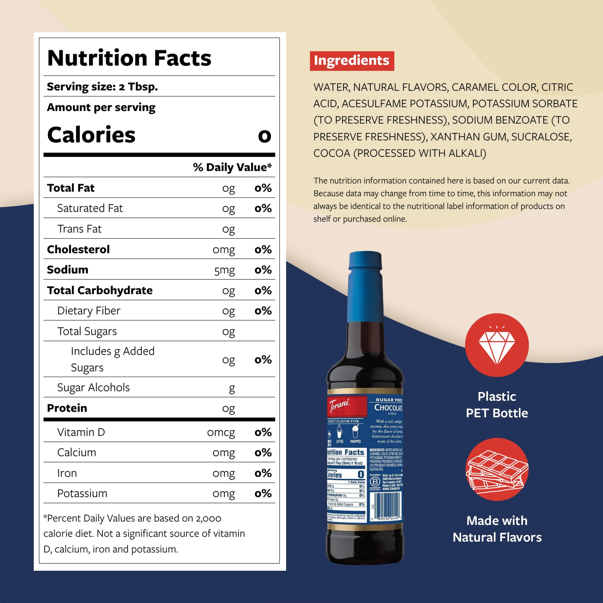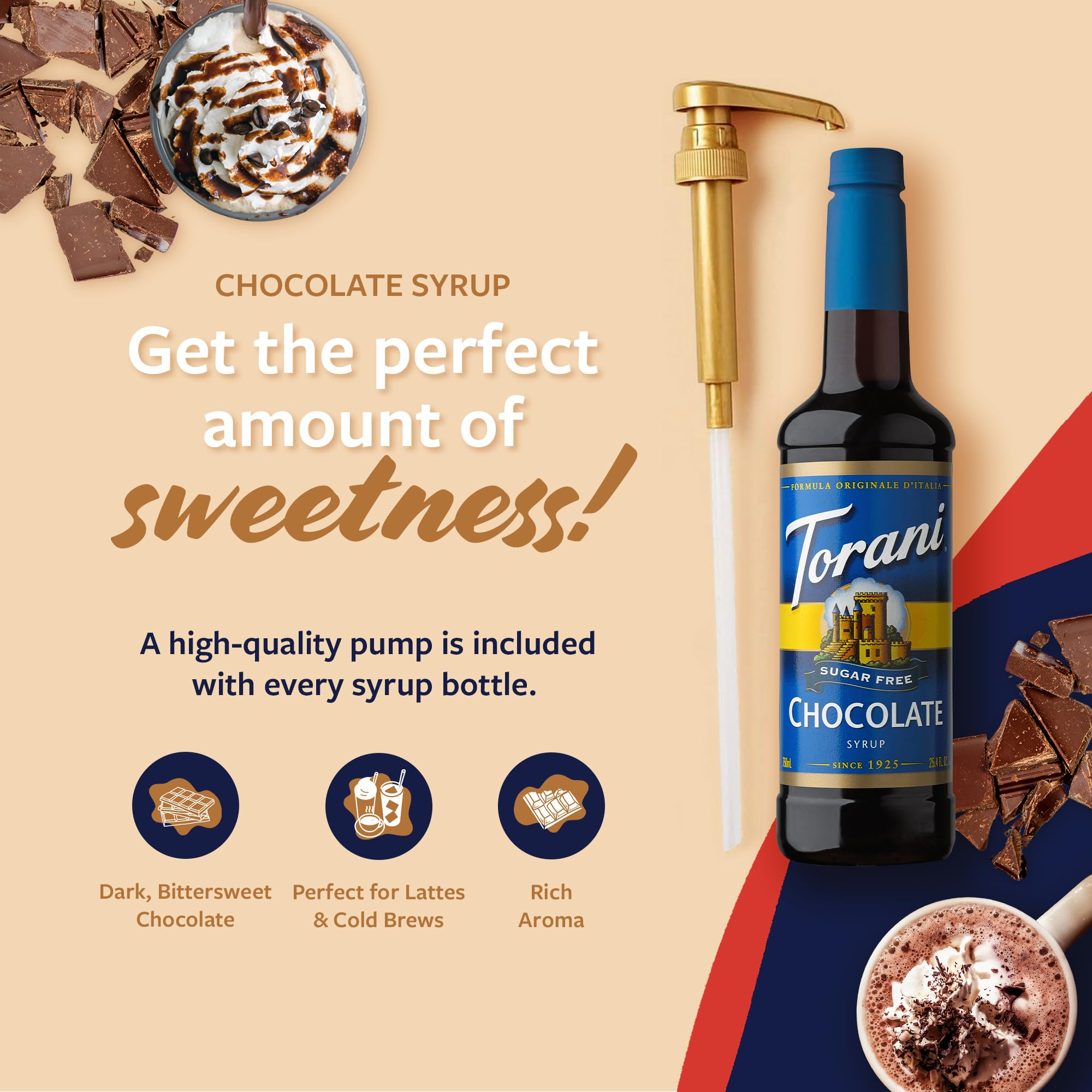 CONVENIENT & MESS-FREE: The large 750 ml Torani Sugar Free Chocolate Syrup bottle, made of BPA-free plastic, comes with a pump, ensuring mess-free sweetening.
