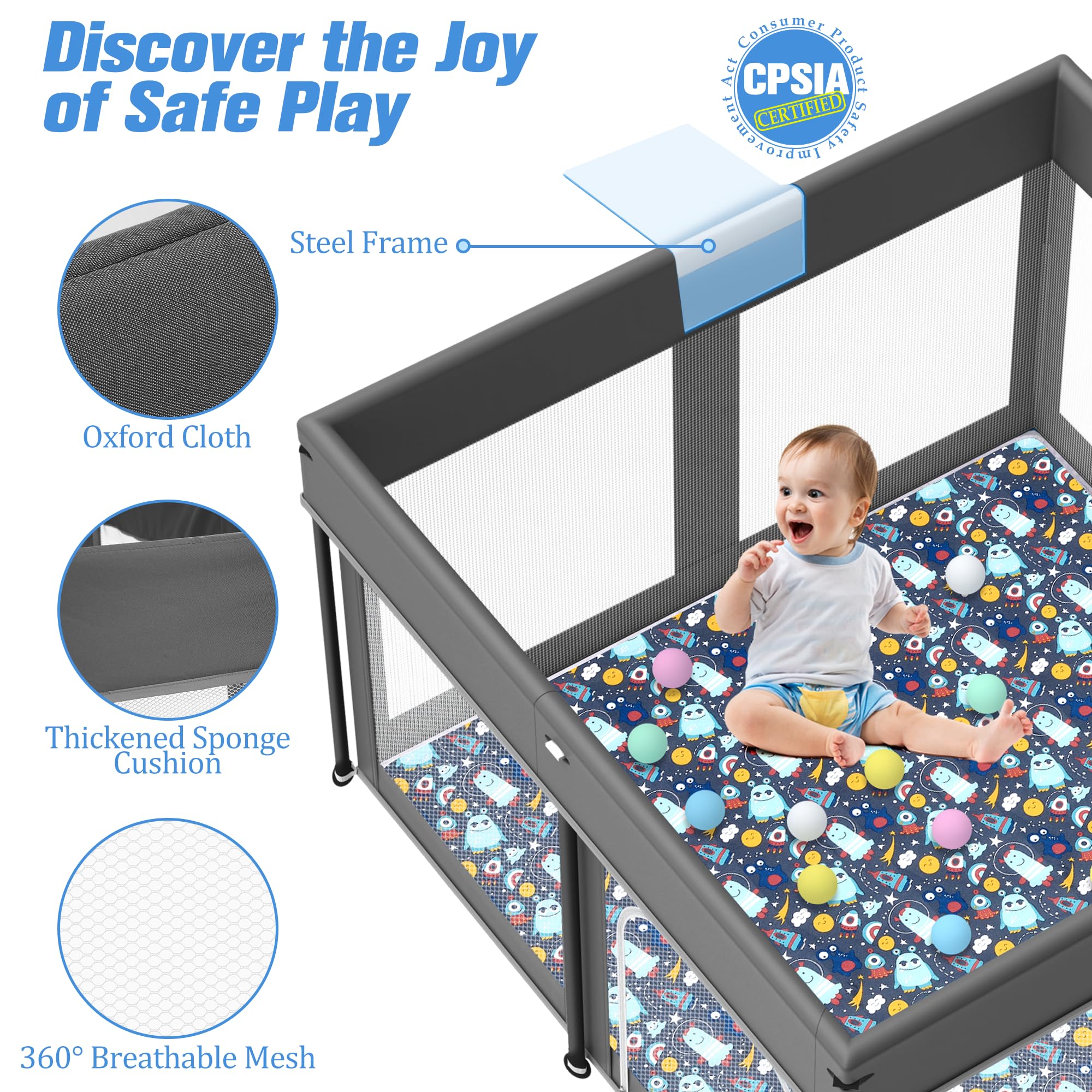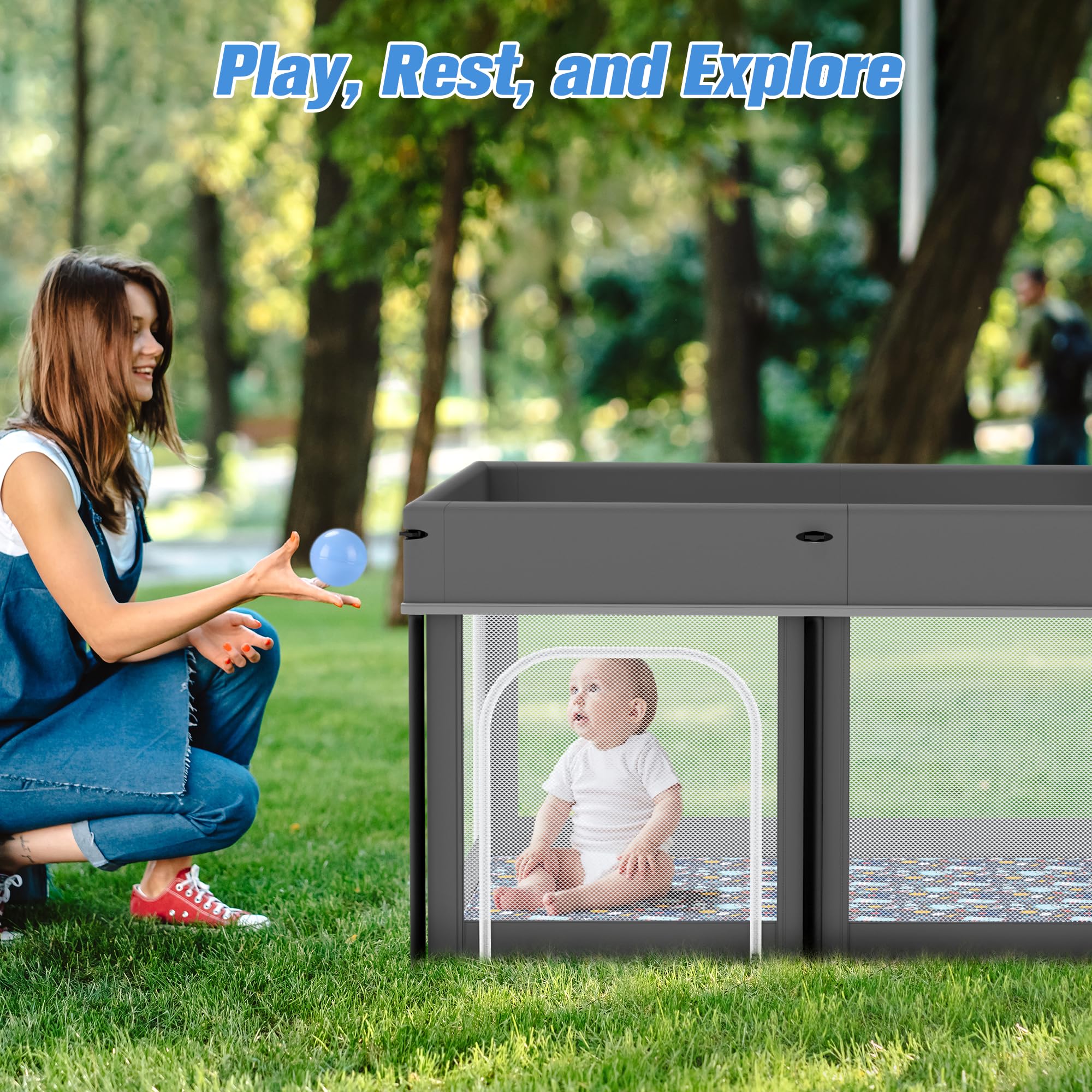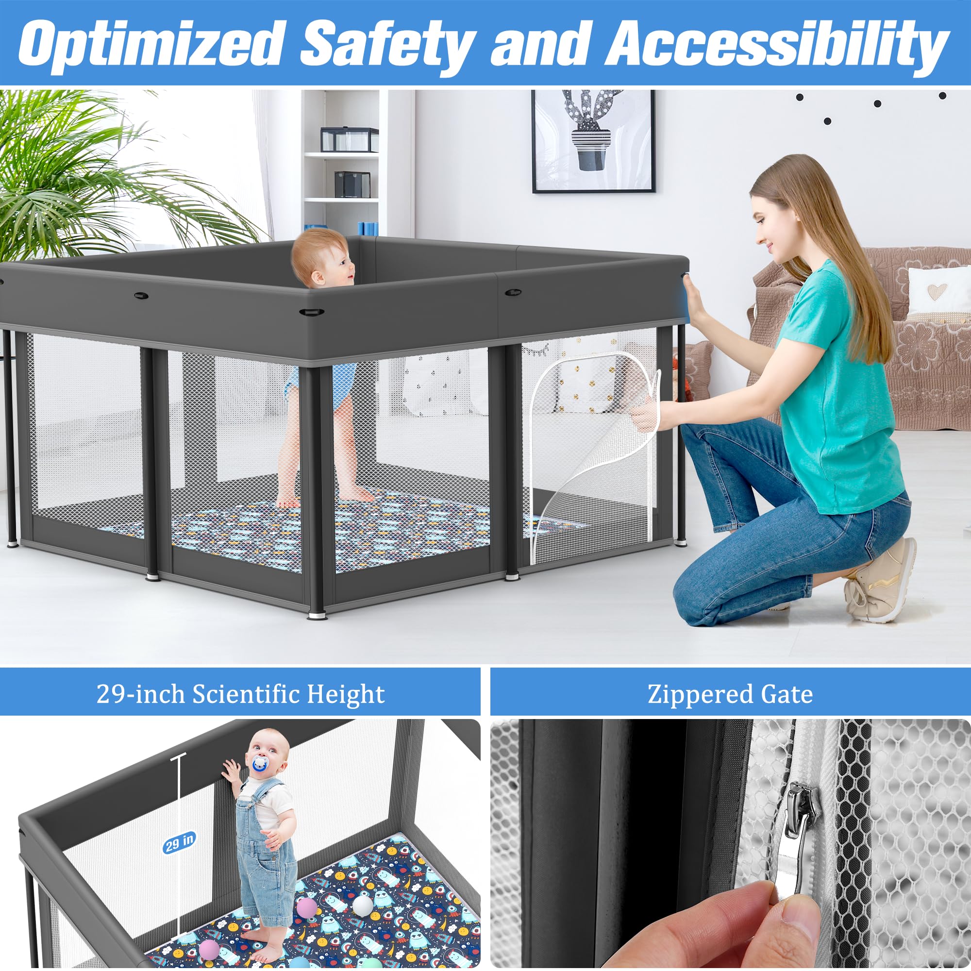【Safe and Secure Baby Pen Play Area Indoor】Safety is our top priority. Our baby fence playpen is built with durable materials, ensuring a secure play area for your little explorer. The baby playpen is entirely covered in child-safe fabric with no exposed gaps, minimizing the risk of pinching and giving you peace of mind while your child plays.