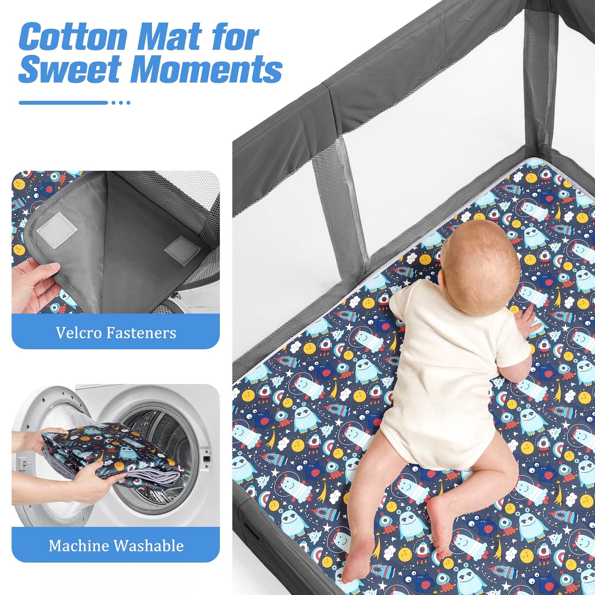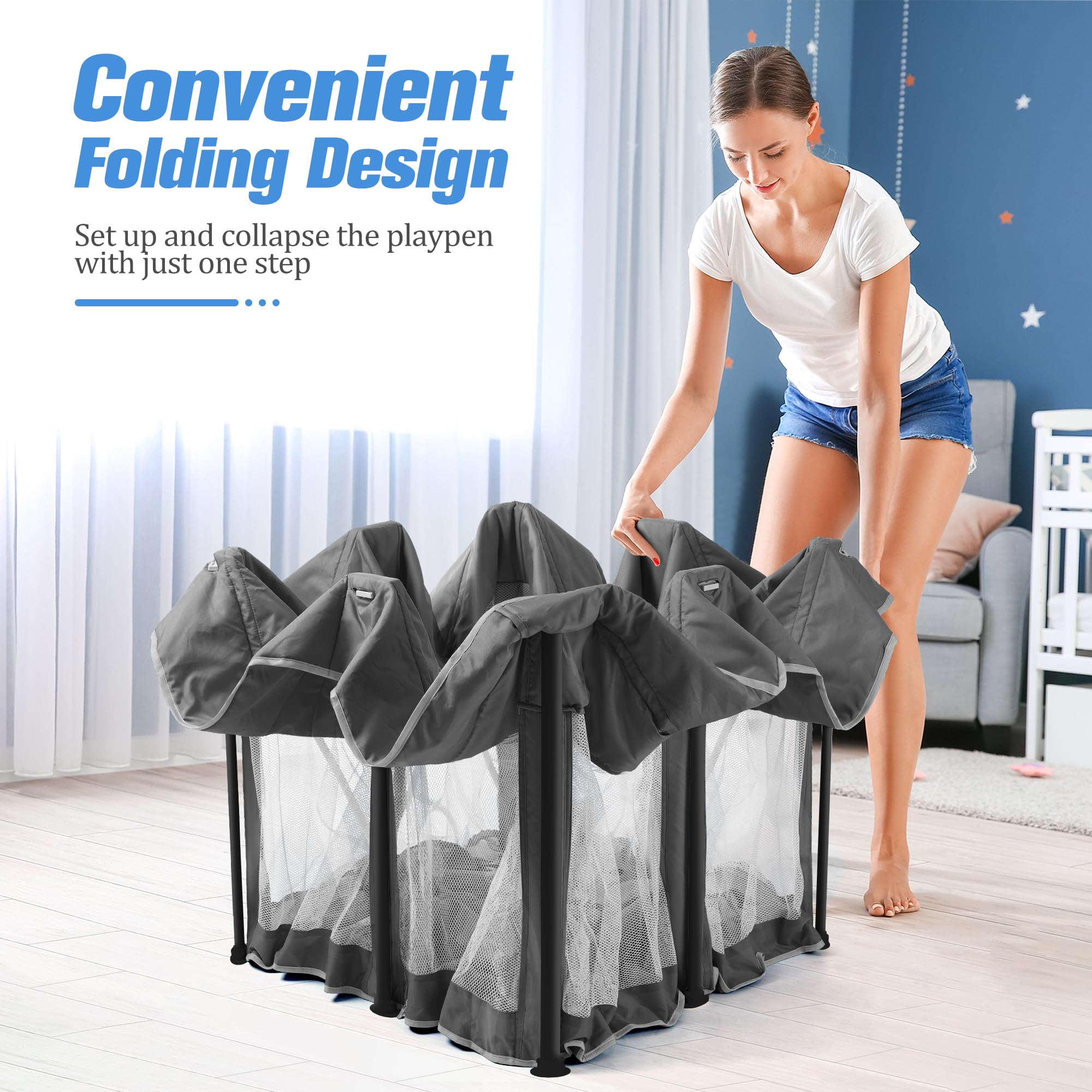 【Travel-Friendly and Compact】Perfect for families on the go, our play pens for babies and toddlers can be easily expanded to its full size and then folded compactly into its carry bag. This makes it ideal for both storage and transportation, ensuring that you have a safe and familiar play area for your child wherever you go.