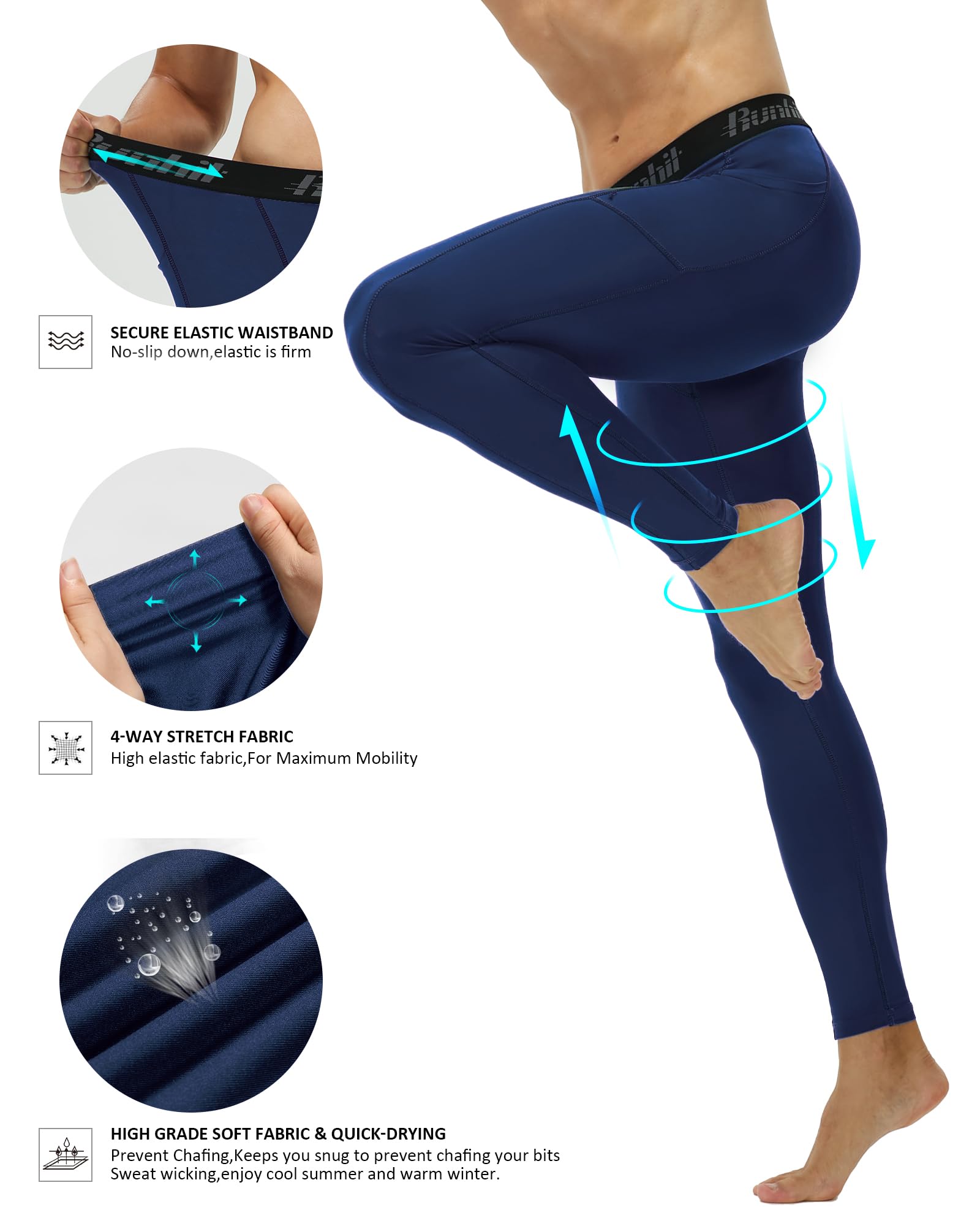 【base layer Protection】Engineered for all weather conditions, our mens compression leggings provide softness without bulk. Ideal for winter running, cycling, or outdoor workouts, they can retains heat while wicking away moisture to keep you dry and comfortable. These mens leggings also include convenient pockets for storing essentials during your outdoor adventures