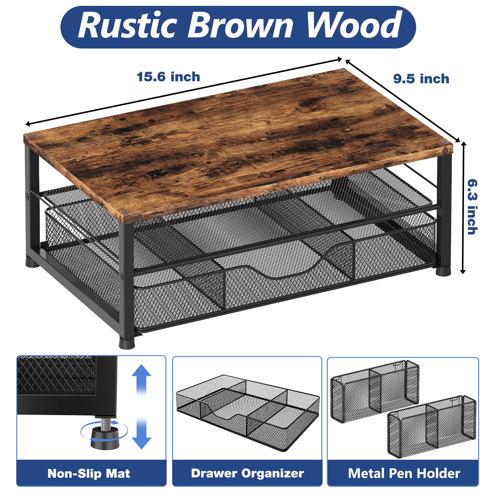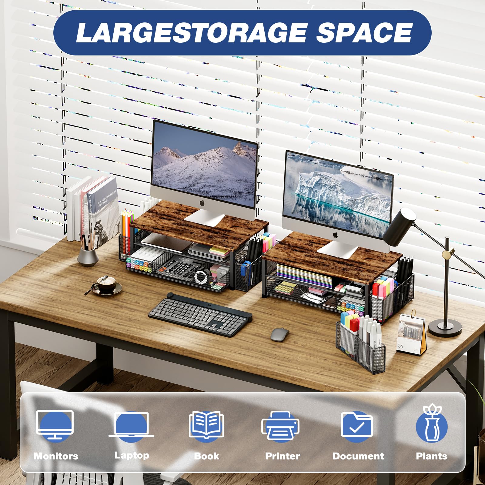 【Save Space】:This 2-Tier monitor stand with drawer and 2 hanging pen holders provides ample storage space to keep your office supplies and office desk accessories neatly organized and easily accessible, keeping your workspace tidy and improving your sense of well-being