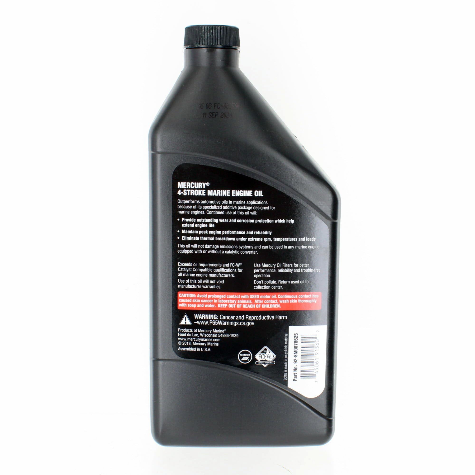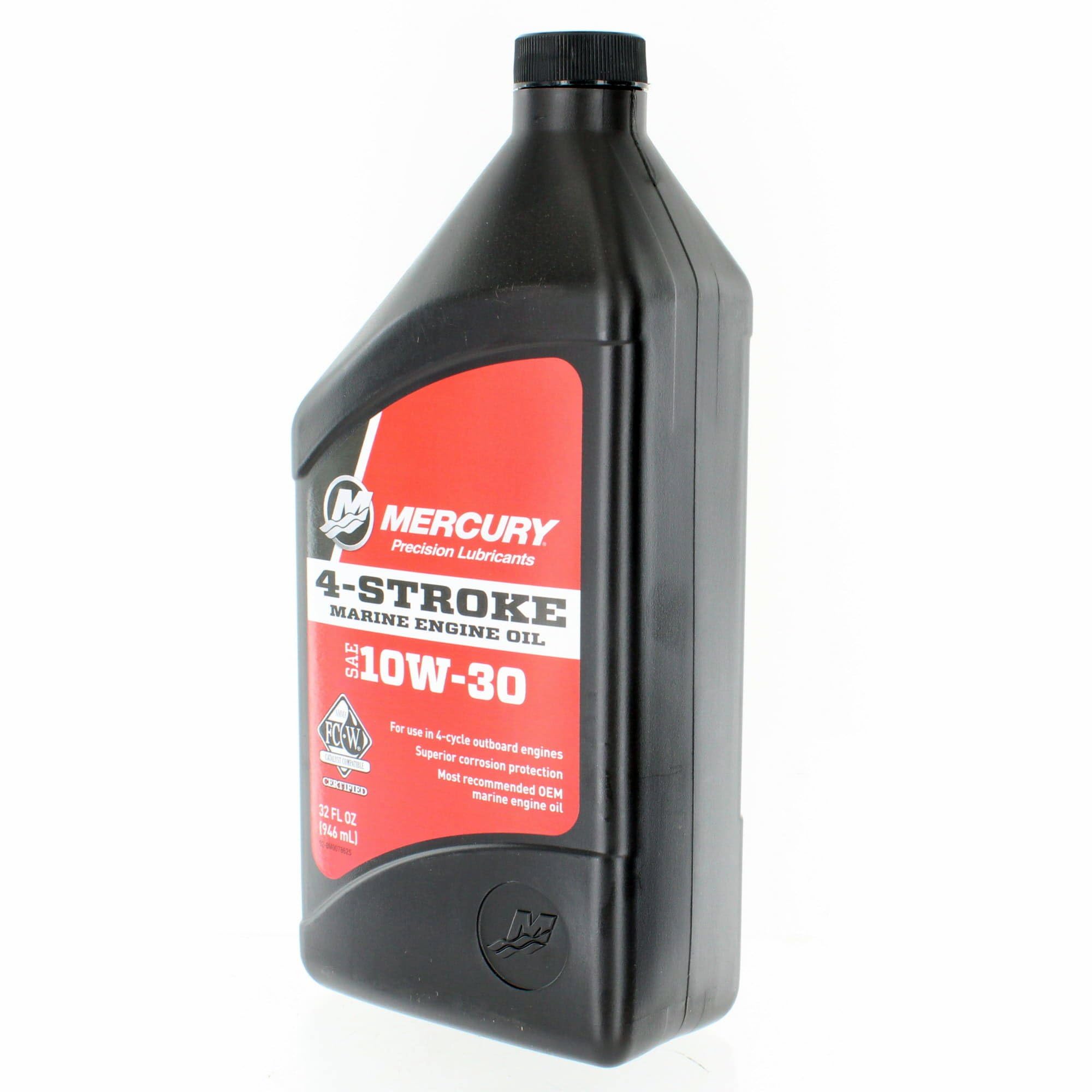 This item for sale is a 32oz quart bottle of Mercury Marine SAE 10W-30 engine oil. Mercury Marine PN: 92-8M0078625 Superior corrosion protection. Most recommended OEM marine engine oil. For use in 4‑cycle/ 4-Stroke outboard engines.