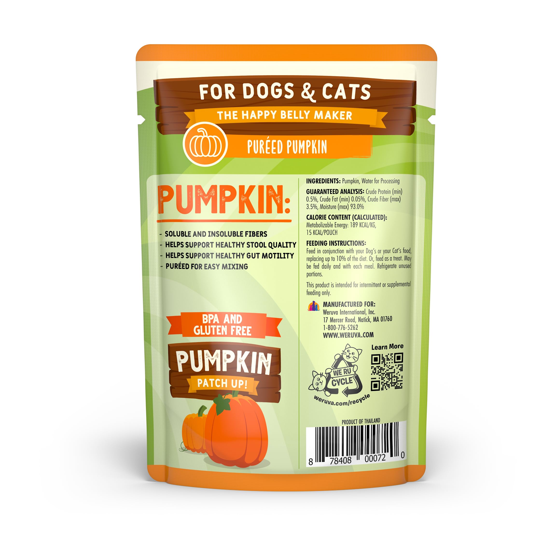 Weruva Pumpkin supplement is a great source of healthy fiber helping to support your cat's or dog's digestive system. We combine the healthy digestive benefits of pumpkin in an easy to serve pouch.