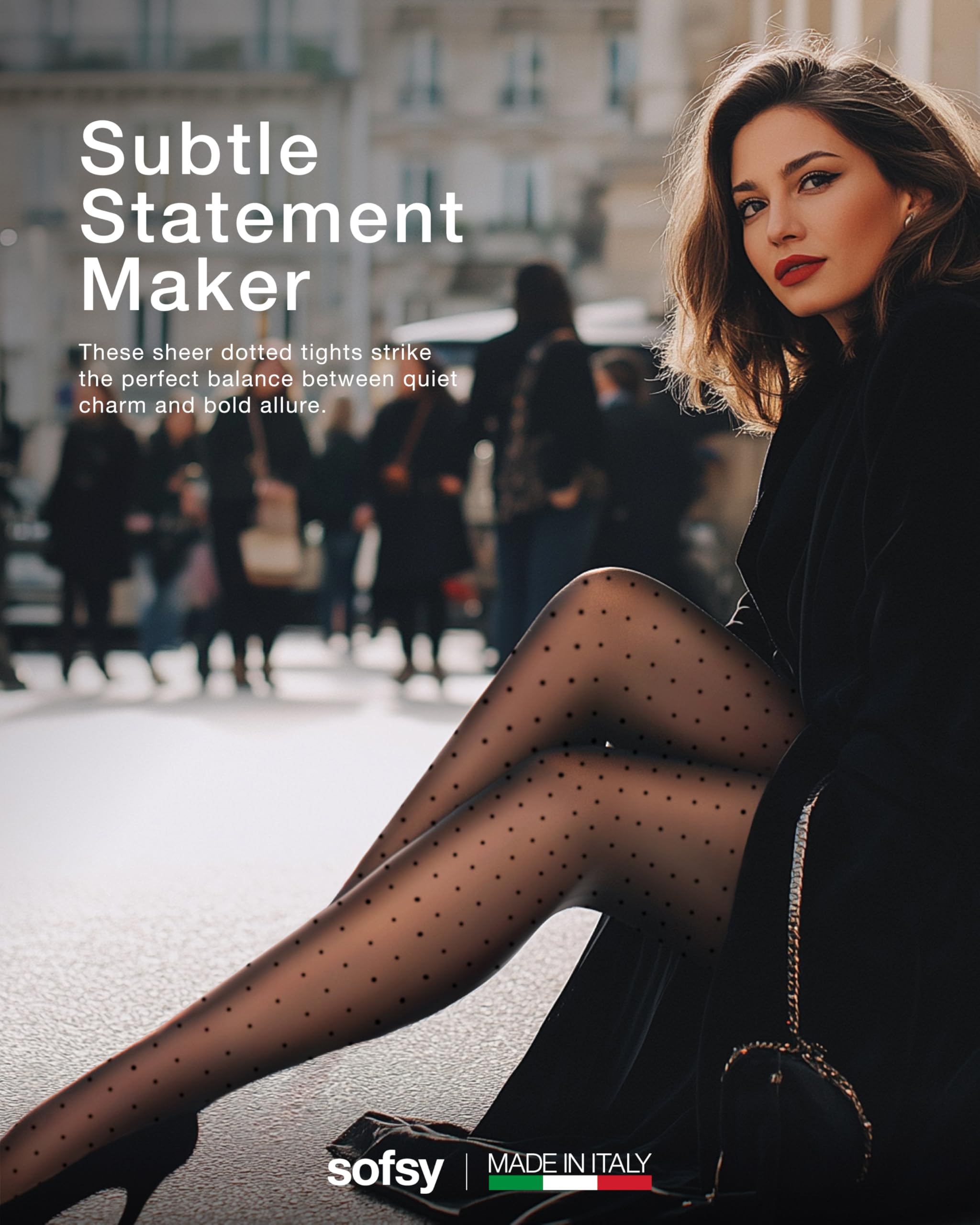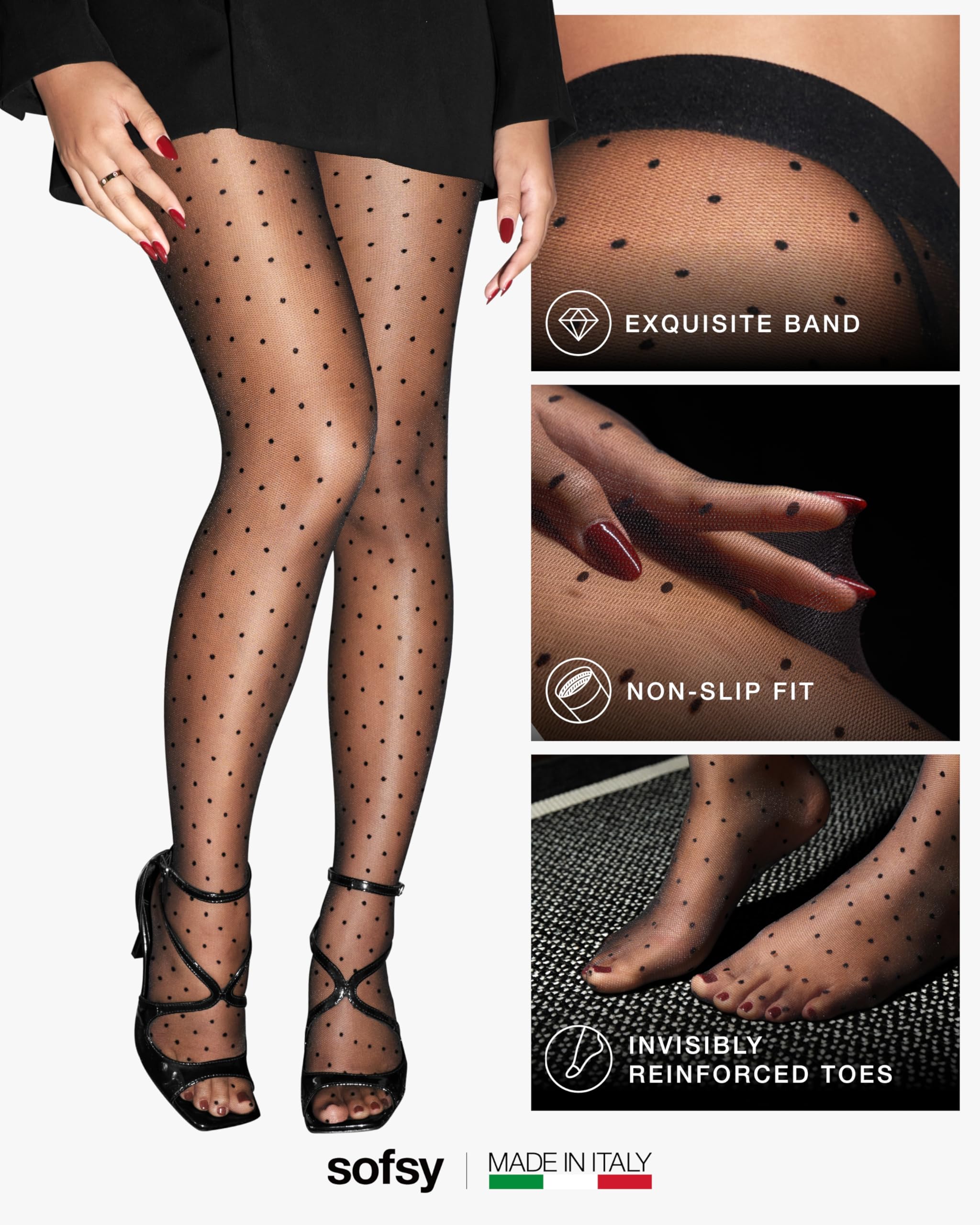 Made in Italy, Designed to Seduce: These sheer-to-waist pantyhose are crafted using silky-soft yarns and a playful polka dot pattern. They add just the right amount of allure to any outfit—whether for date night, office wear, or a festive occasion.