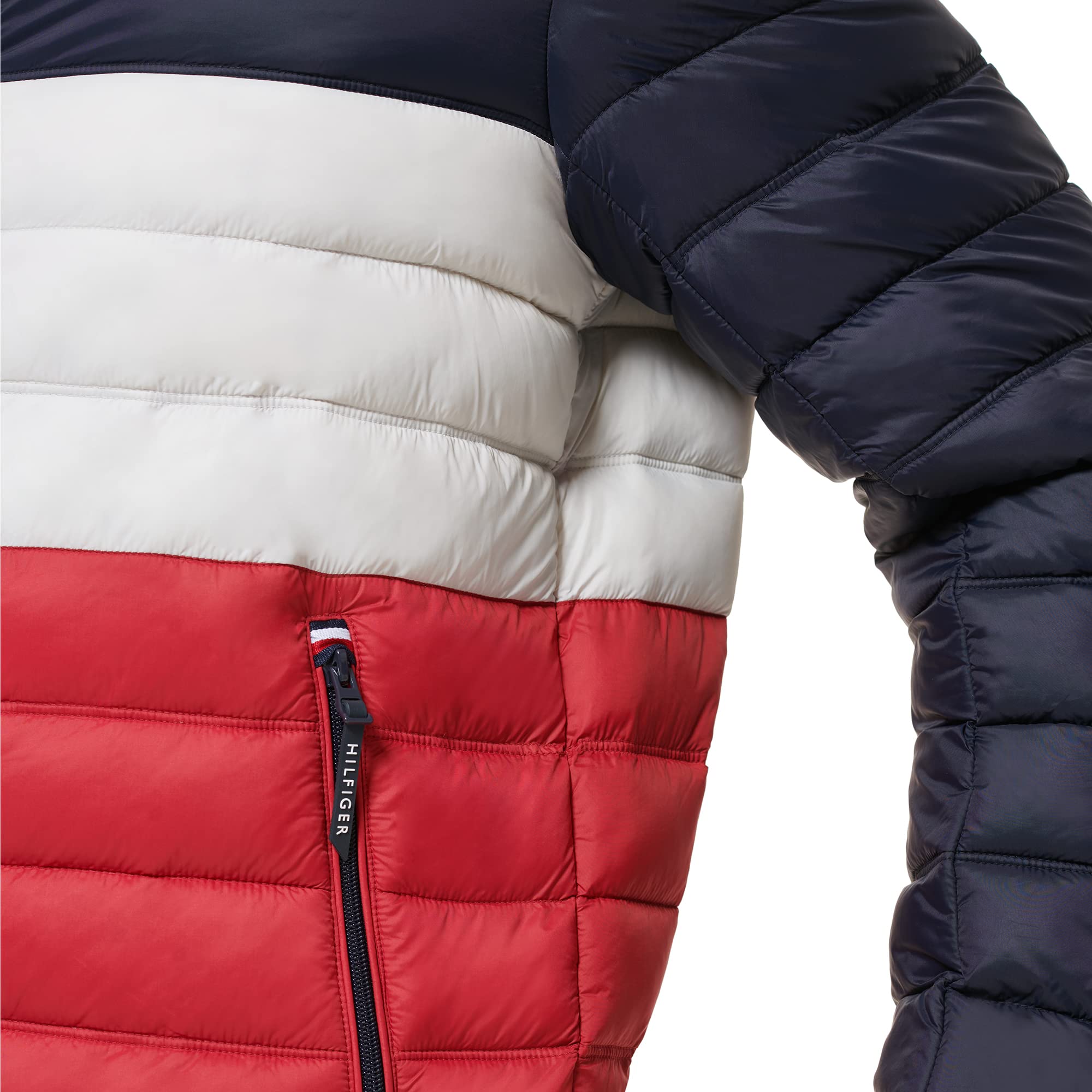 STYLISH FEATURES: The jacket features the Tommy Hilfiger signature flag on the left chest and the “Hilfiger” name on the back of the collar; Hilfiger logo patch on arm for added flair; Also features a front zipper closure, two side pockets with zipper closures, and an interior hidden zipper pocket