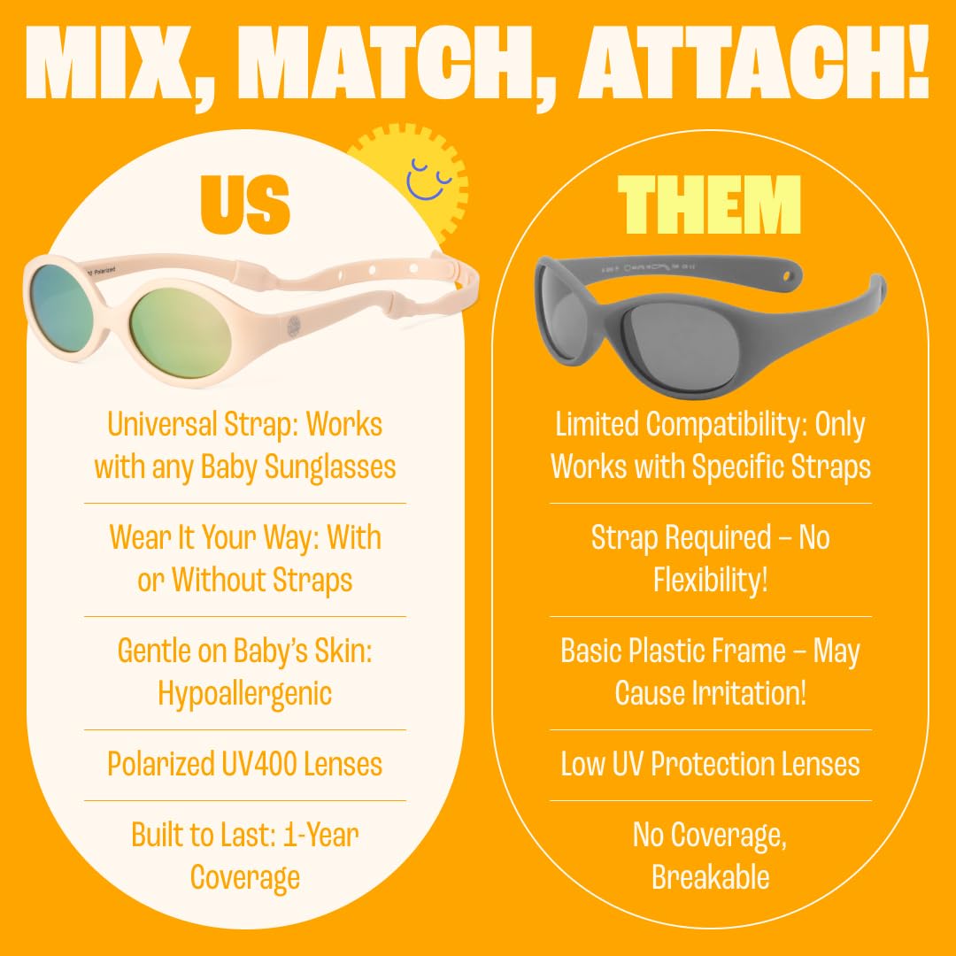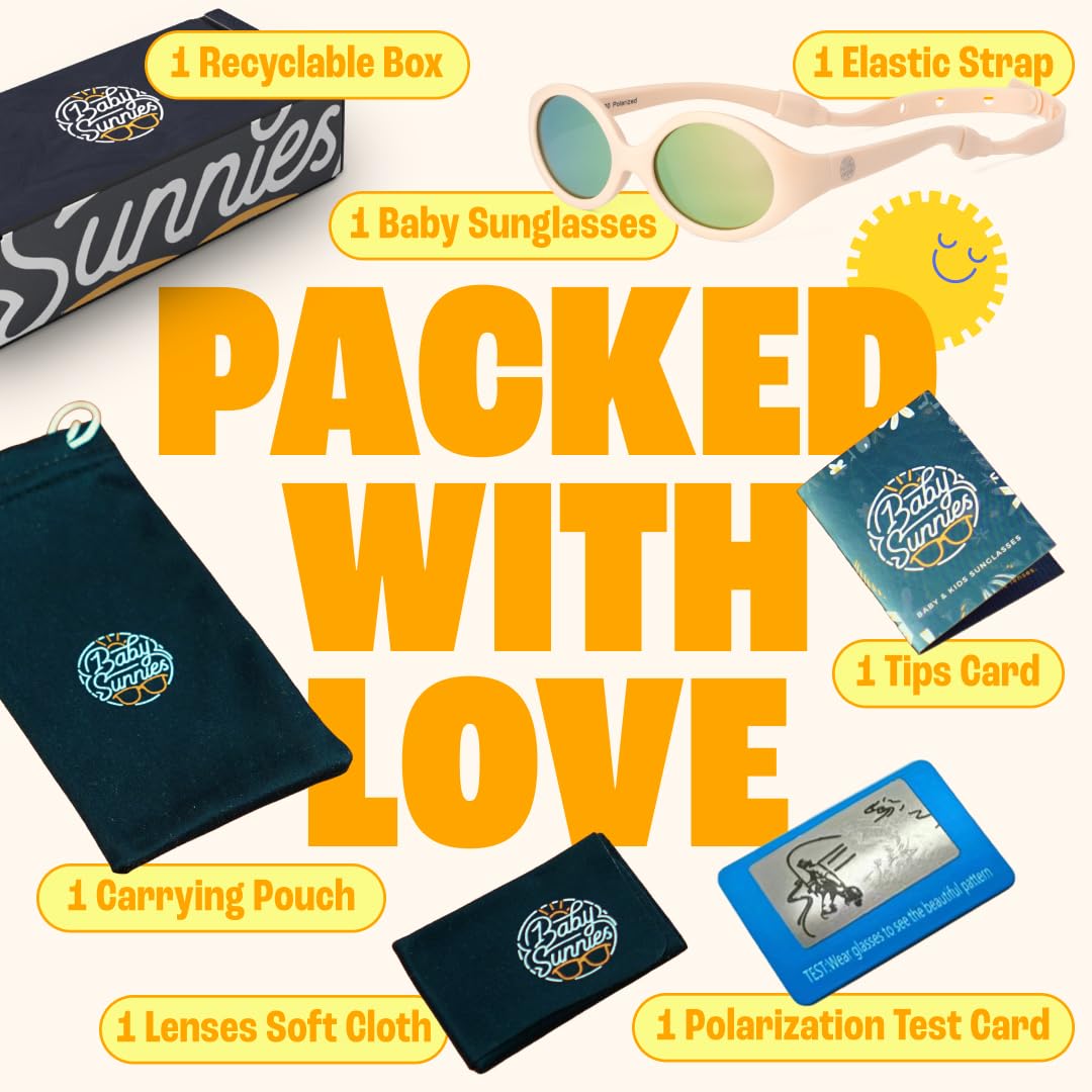Ultimate Baby Protection: BABY SUNNIES polarized baby sunglasses with a strap are designed for ultimate UV400 protection. Keep your little one's eyes safe with full UVA and UVB coverage, perfect for baby beach days or on-the-go fun