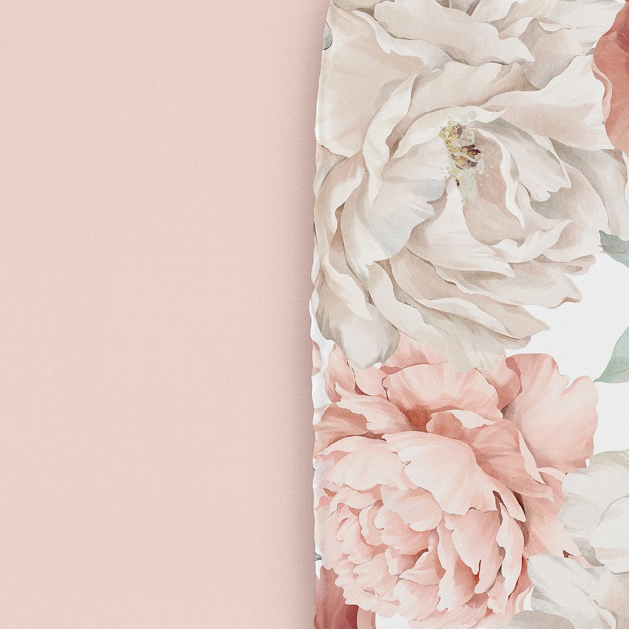 Pack of 2 Brushed Microfiber Sheets Set - (1) Light Pink and Ivory Boho Shabby Chic Watercolor Floral Bohemian Vintage Garden Peony Oversized Flower Print paired with (1) Solid Color Blush Pink