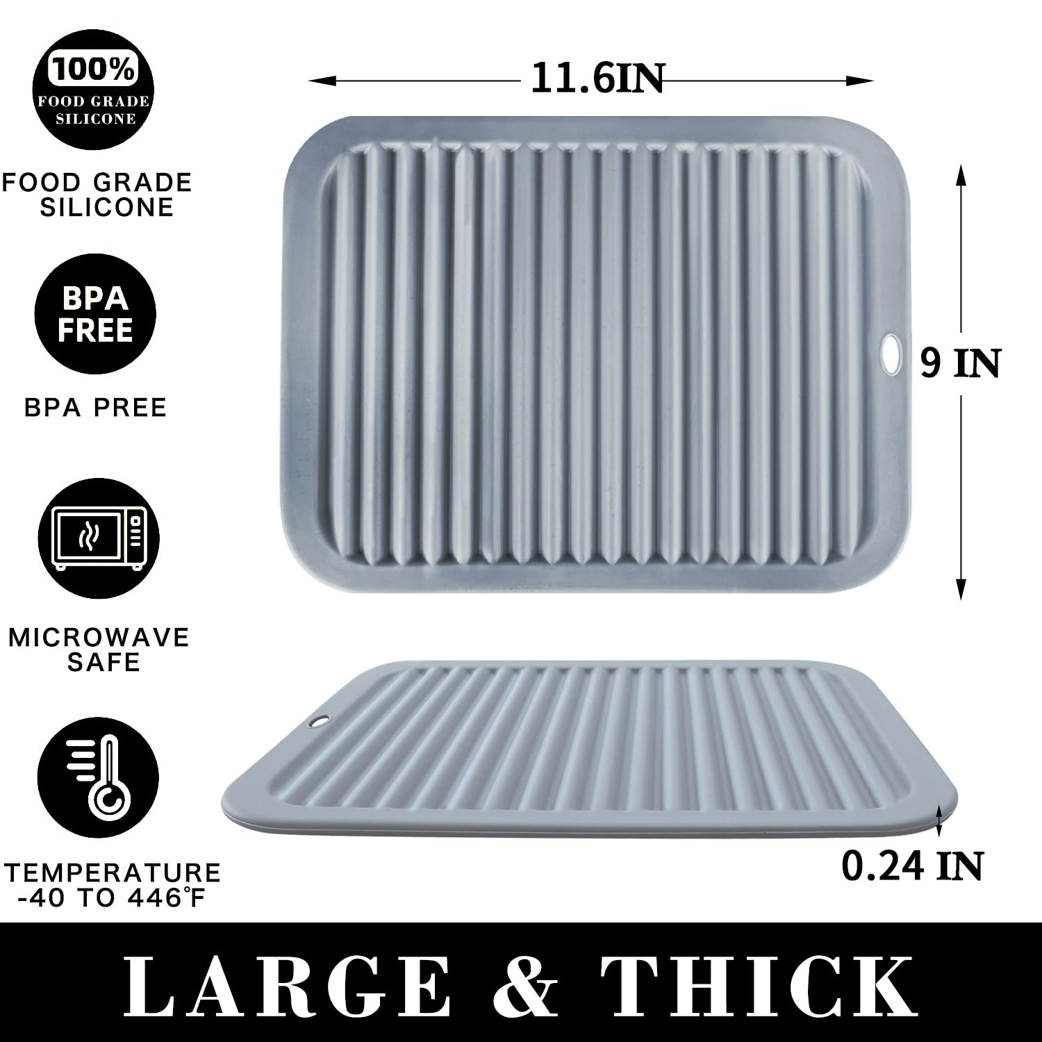 🍳【FOOD-GRADE KITCHEN HOT PADS】: The grey trivets for hot dishes use high-quality food-grade silicone that is 100% BPA-free and built to be long-lasting and flexible; super safe to grab a hot pan or dish. The size is 9x11.6 inches, suitable for any style pan or pot.